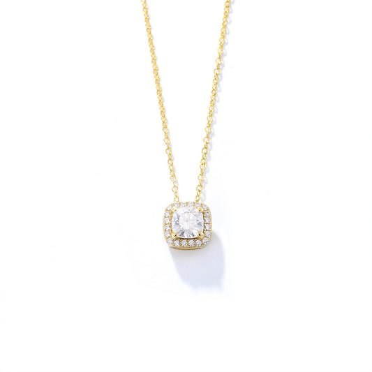Sterling Silver White Jade Pendant Necklace with Hetian Jade Square Detail