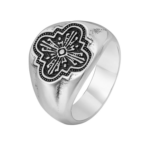 Titanium Steel Ring with Great Wall Pattern Men's Retro Domineering Jewelry