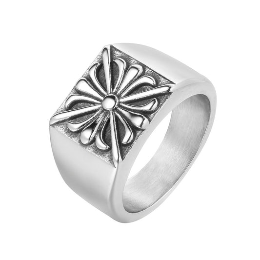 Titanium Steel Men's Ring with Cross Phoenix Totem