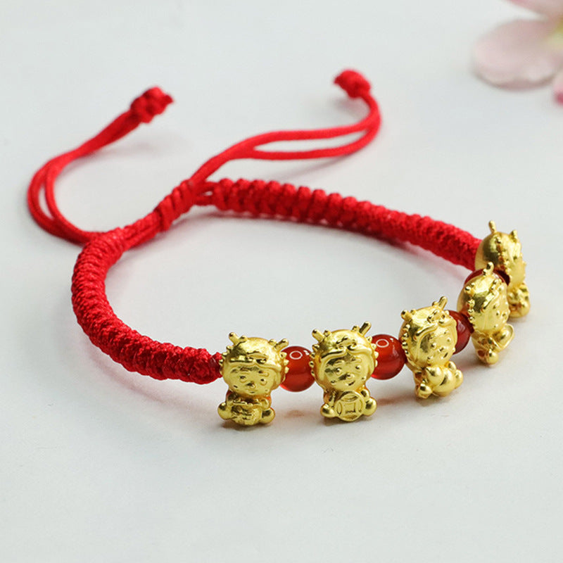 Embrace the power of the Natural Red Agate Bracelet Five Fortune Golden Dragon Red Rope Bracelet, also known as "The Year of The Loong" Bracelet. This exquisite piece from the Planderful Collection is designed to bring you fortune's favor.
