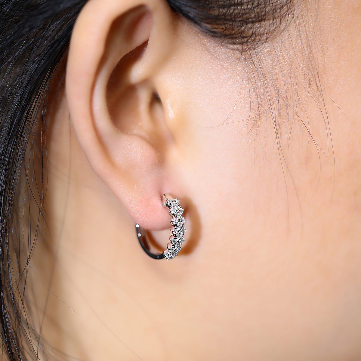 These Moissanite hoop earrings offer radiant sparkle with a timeless silhouette that pairs with any wardrobe. The durable sterling silver construction supports daily wear, while the three-row setting maximizes light reflection for everyday elegance or formal occasions.