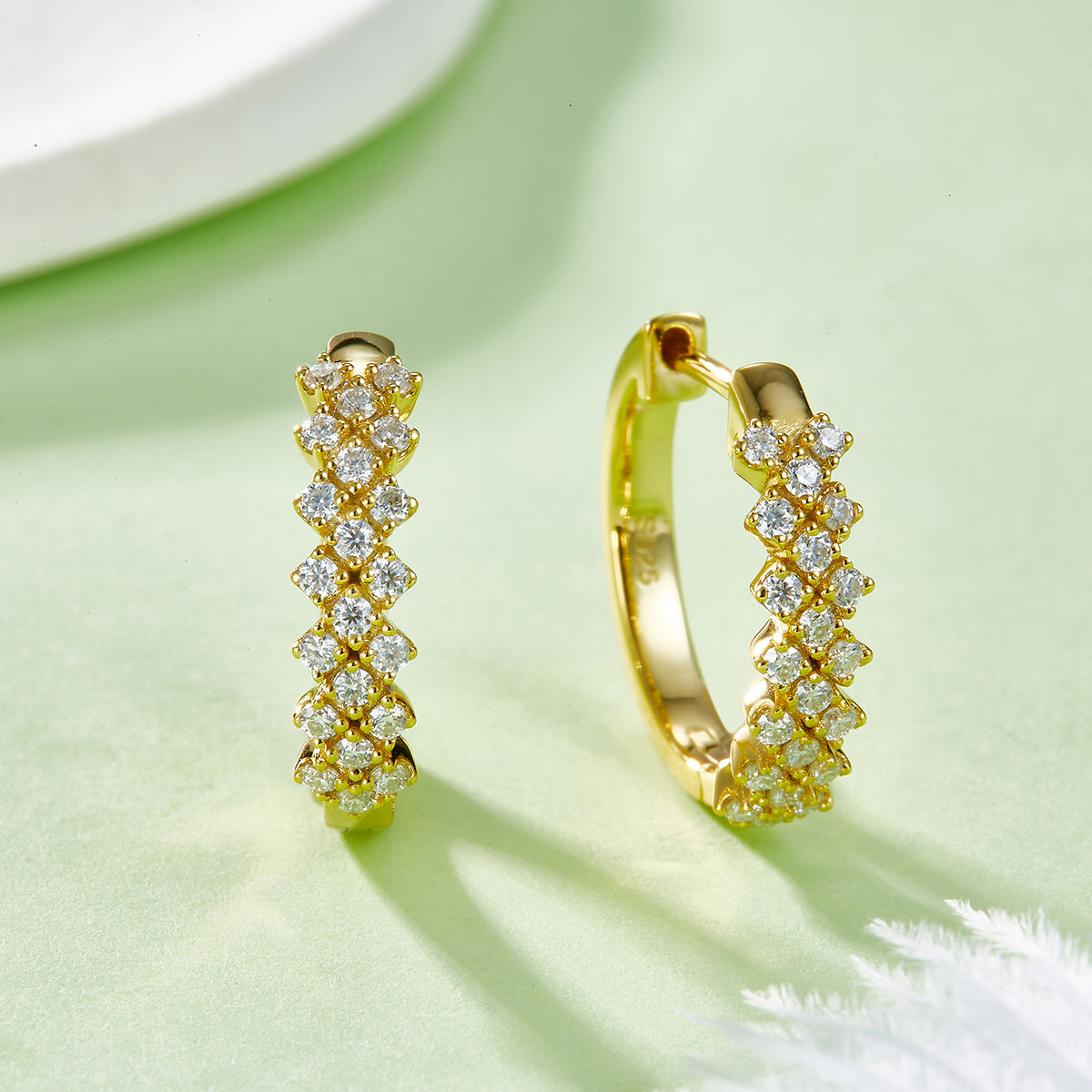 Elegant and versatile, these 0.51 ct Moissanite three-row hoop earrings in S925 sterling silver are designed for everyday wear and special occasions alike. From Planderful's Moissanite Sparkling collection, they deliver quiet luxury with brilliant sparkle.
