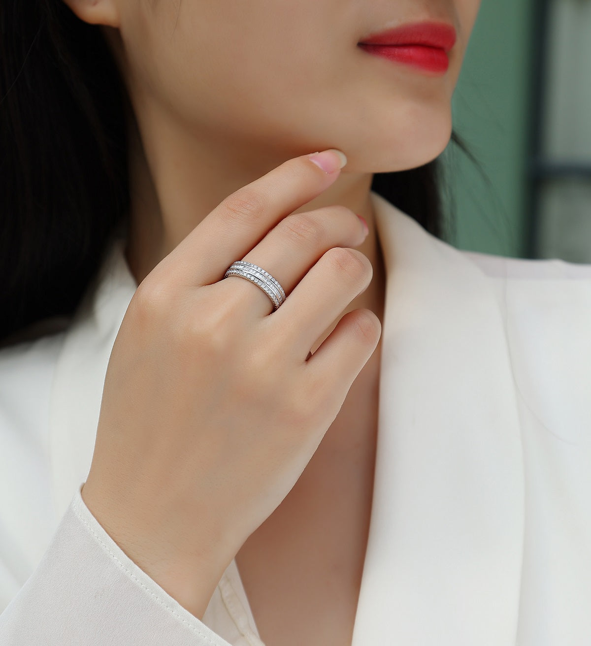 A timeless symbol of commitment, this 1.1ct Moissanite S925 silver-plated three-layer eternity ring is designed for women who love radiant sparkle and enduring shine. It combines a contemporary three-layer design with brilliant moissanite for everyday elegance.