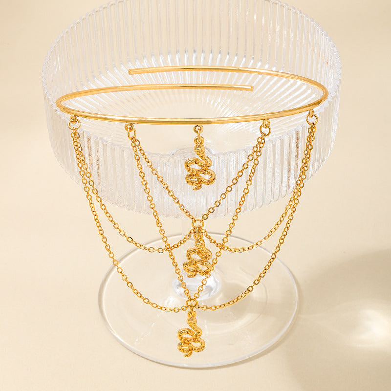 European and American Fashion French Design Sense Cross-Border New Metal Line Tassel Snake Pendant Women's Arm Ring by Planderful delivers a stunning statement piece for fashion-forward individuals seeking to elevate their accessory game. This exquisite bracelet seamlessly combines elegance and contemporary design to make every outfit shine.