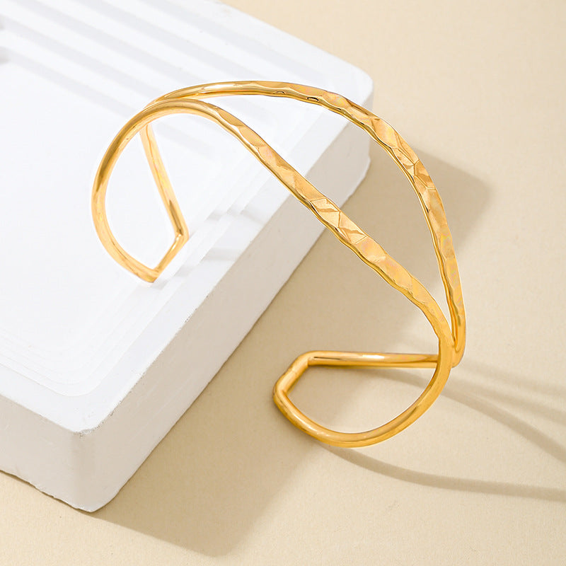 Fashion Personality Creative Texture Metal Geometric Hollow Lines Irregular Opening Women's Bracelet by Planderful delivers a unique style statement for the fashion-forward individual. This stunning bracelet is perfect for elevating any outfit, making it an essential piece in your accessories collection.
