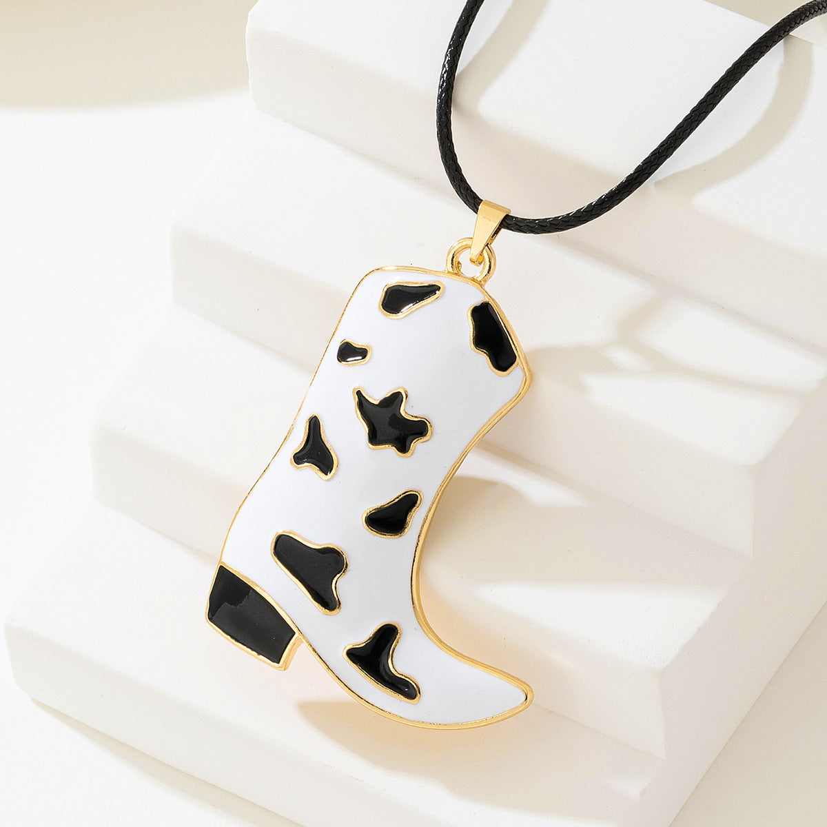 Fashion Personality Hip Hop Simple Versatile Metal Western Cowboy Cow Pattern Boots Women Pendant Necklace by Planderful delivers a unique blend of style and individuality for fashion enthusiasts seeking a statement piece. This exquisite necklace is perfect for accessorizing any outfit, whether you're dressing up for a night out or adding flair to a casual look.