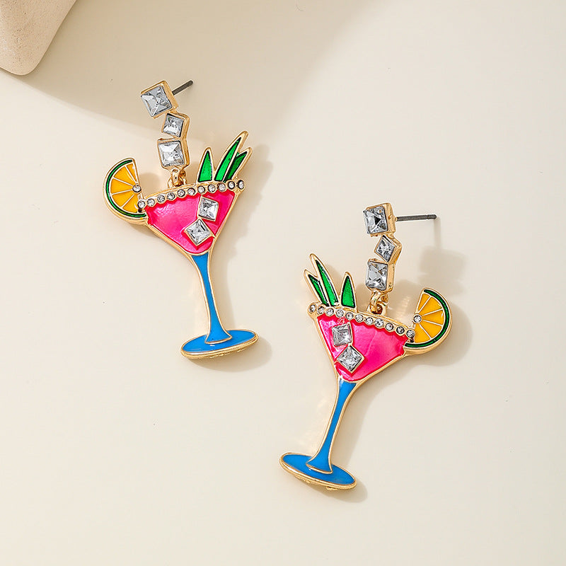 Fashion Fun Summer Cool Fashion Jewelry Colored Metal Fruit Wine Glass Zircon Women's Earrings by Planderful delivers a vibrant and playful aesthetic for the modern woman. These exquisite earrings are perfect for adding a splash of color to any summer outfit, ensuring you stand out in style.