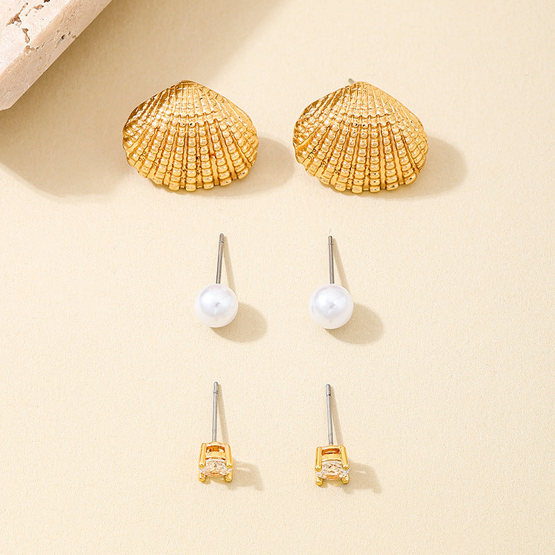 European and American Fashion Color Ocean Wind Metal Zircon-Encrusted Shell Starfish Pearl Women's Earrings by Planderful delivers a stunning ocean-inspired elegance for your beach vacation wear.