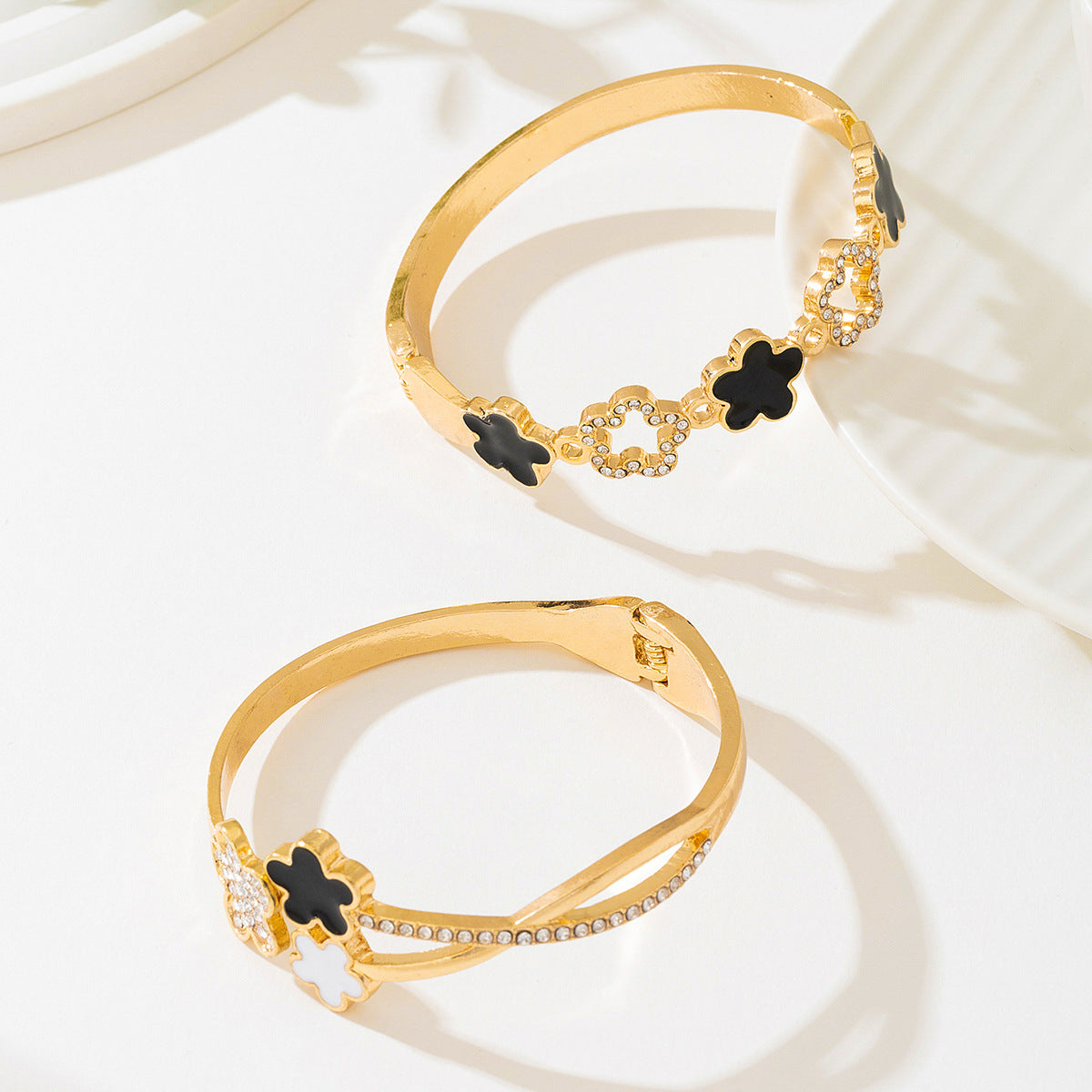 2 Fashionable European and American Personalized Commuting Classic Metal Five-Leaf Clover Flash Zircon Women's Bracelet Set by Planderful delivers a stunning accessory that elevates your style for everyday wear. This exquisite bracelet set, part of the Vienna Verve collection, is the perfect blend of elegance and modern fashion, making it an ideal choice for the contemporary woman who values both beauty and versatility.