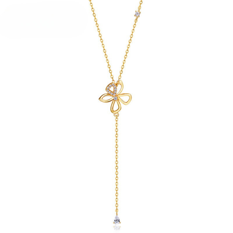 Butterfly Flower Long Tassel Zircon Sterling Silver Necklace