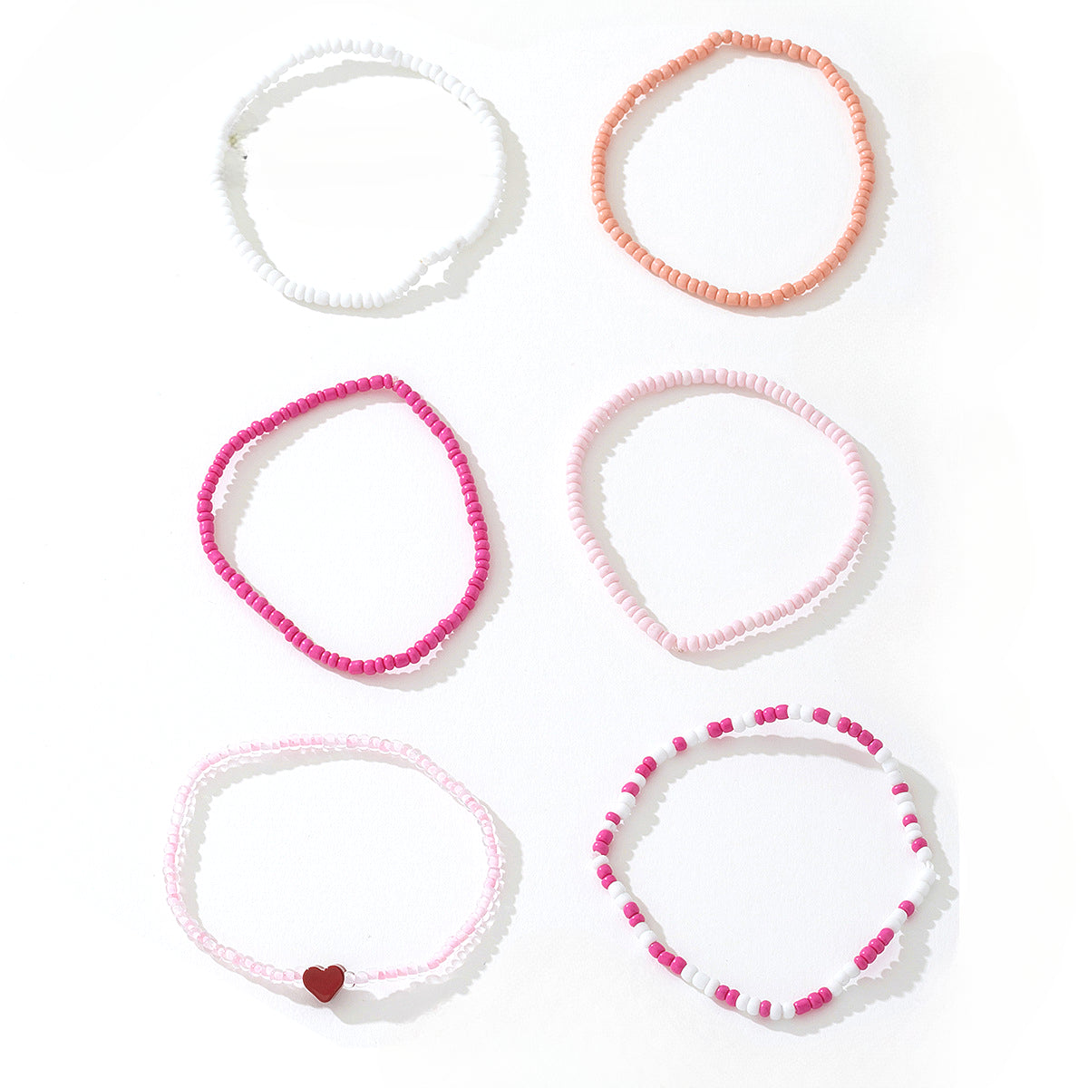 6 Cute and Charming Fashion European and American Glass Beaded Color Woven Love Multi-Layer Stacked Women's Bracelet Set by Planderful delivers a stunning accessory experience for every fashion-forward woman. This exquisite bracelet set combines elegance and versatility, making it the perfect statement piece for any occasion.