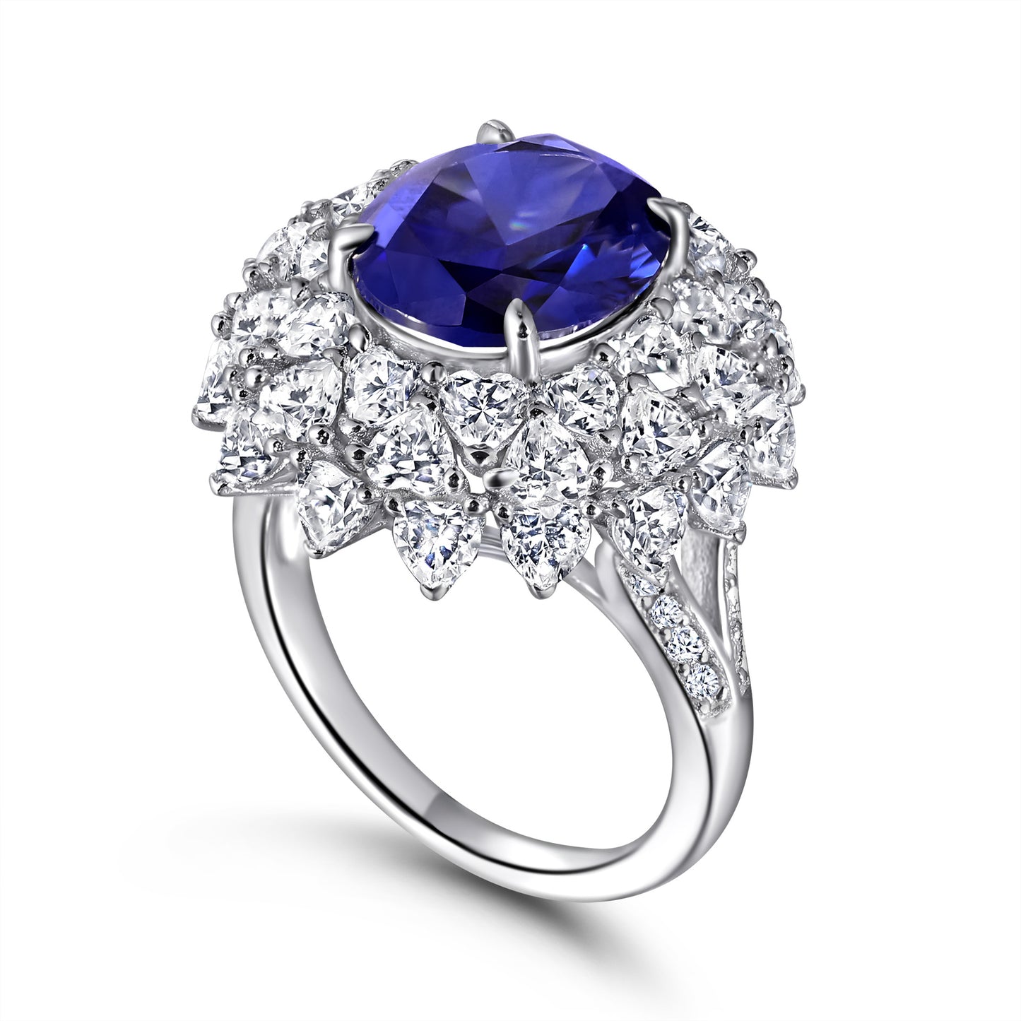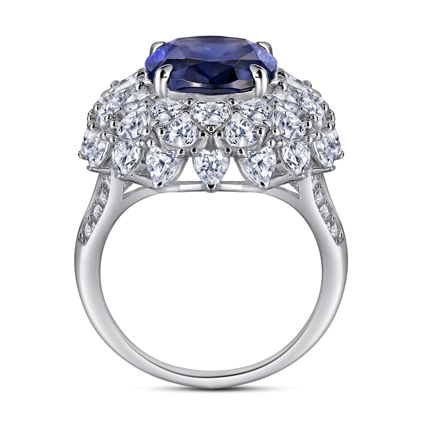 This exquisite ring is sure to make a statement, with a stunning 6CT Oval Blue Zircon brilliantly displayed in the center of a sumptuous flower, surrounded by a petals halo composed of luxurious round Zircons. Crafted in sterling silver, this luxuries ring is perfect for any special occasion.