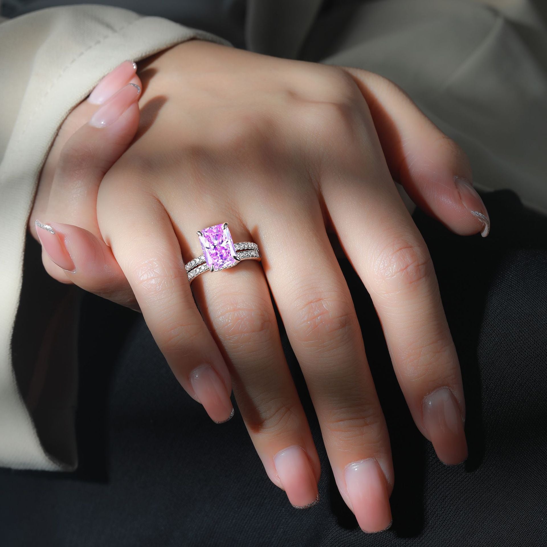 Crafted from premium sterling silver, this ring showcases an intricate design featuring an impressive 8 x 11 color treasure high carbon Zircon square diamond that sparkles brilliantly. The ice flower cutting technique enhances its visual appeal, making it perfect for special occasions or as a stunning everyday accessory.