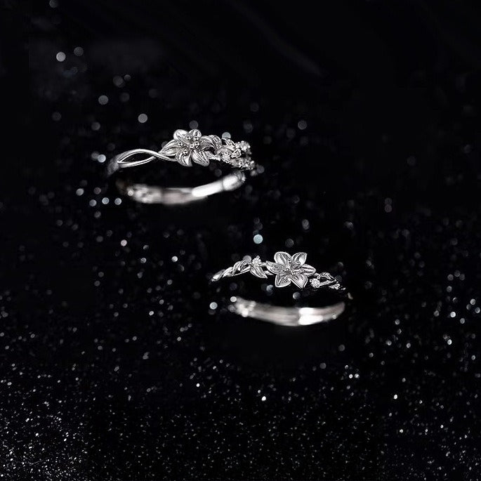 Planderful 925 Sterling Silver Lily And Jasmine Ring For Women Elegant Adjustable Opening Flower Design