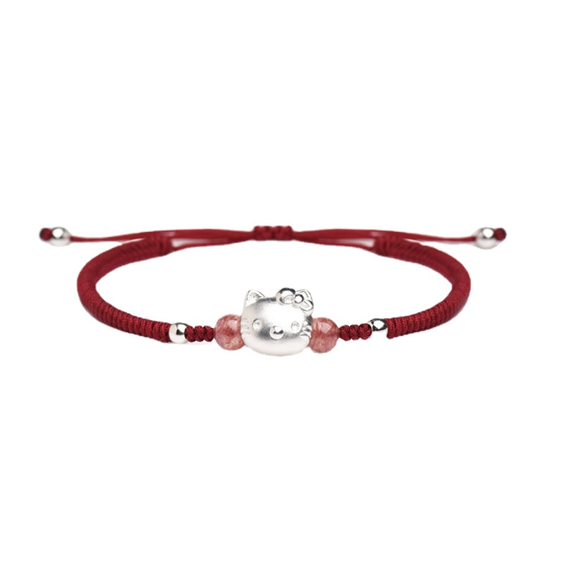Silver Fortune's Favor Hand-Woven Bracelet with Sterling Silver KT Cat
