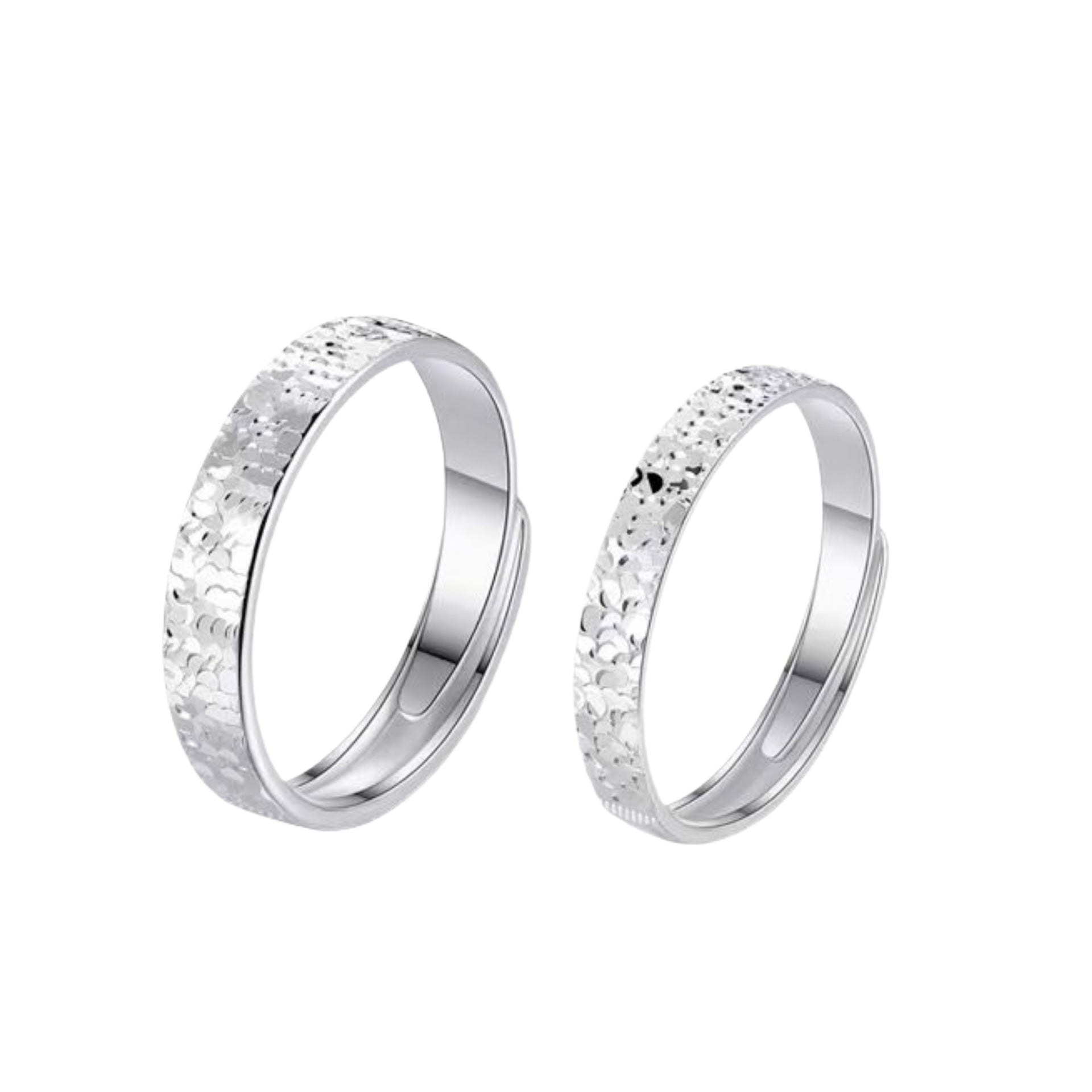 Planderful Sterling Silver Crushed Ice Couple Ring Unisex Adjustable Band For Lovers Festival Gift