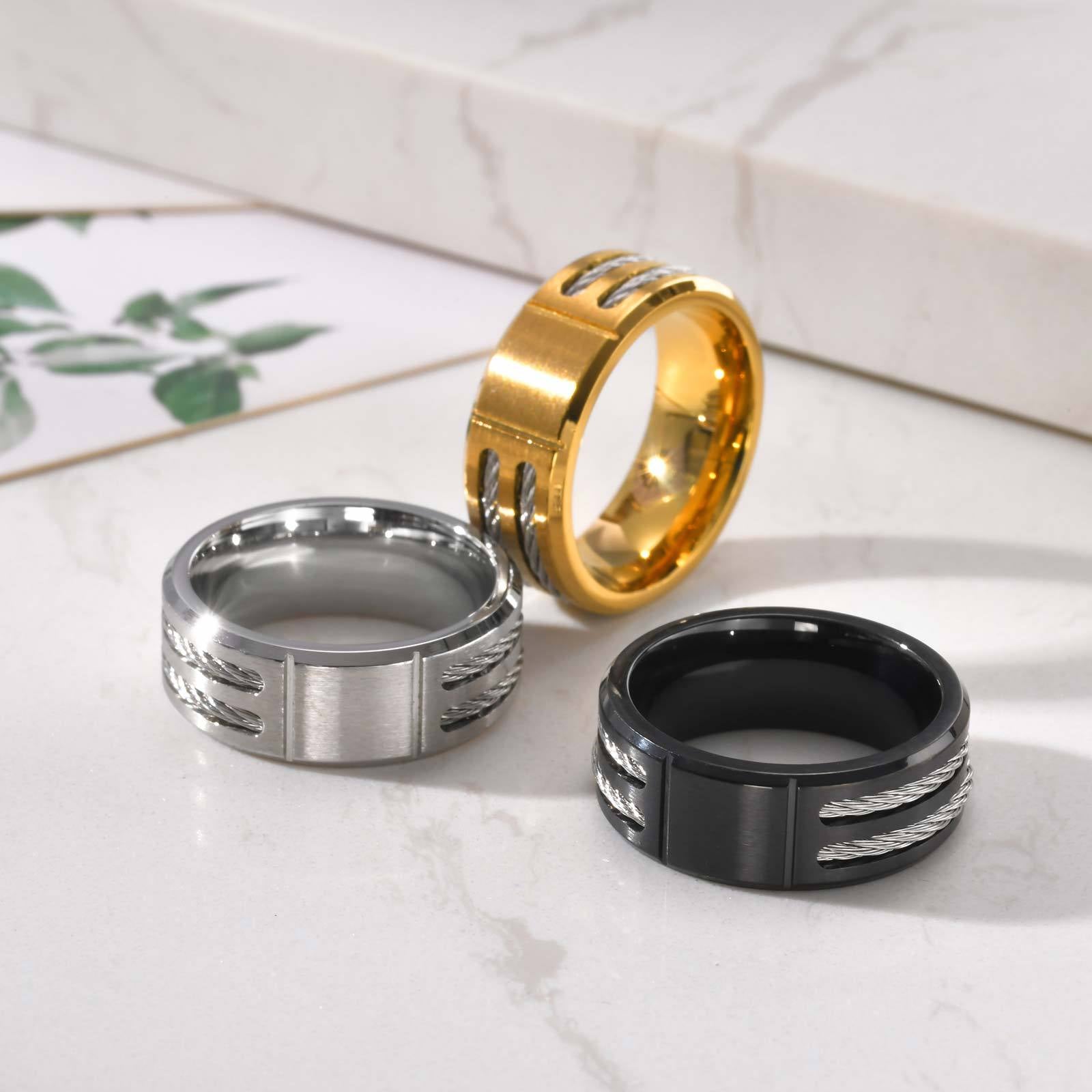 Crafted from titanium steel, this ring delivers lasting strength and a clean, masculine silhouette. Its 9mm width creates a substantial presence that complements a wide range of outfits—from casual weekend looks to sharp, polished ensembles.