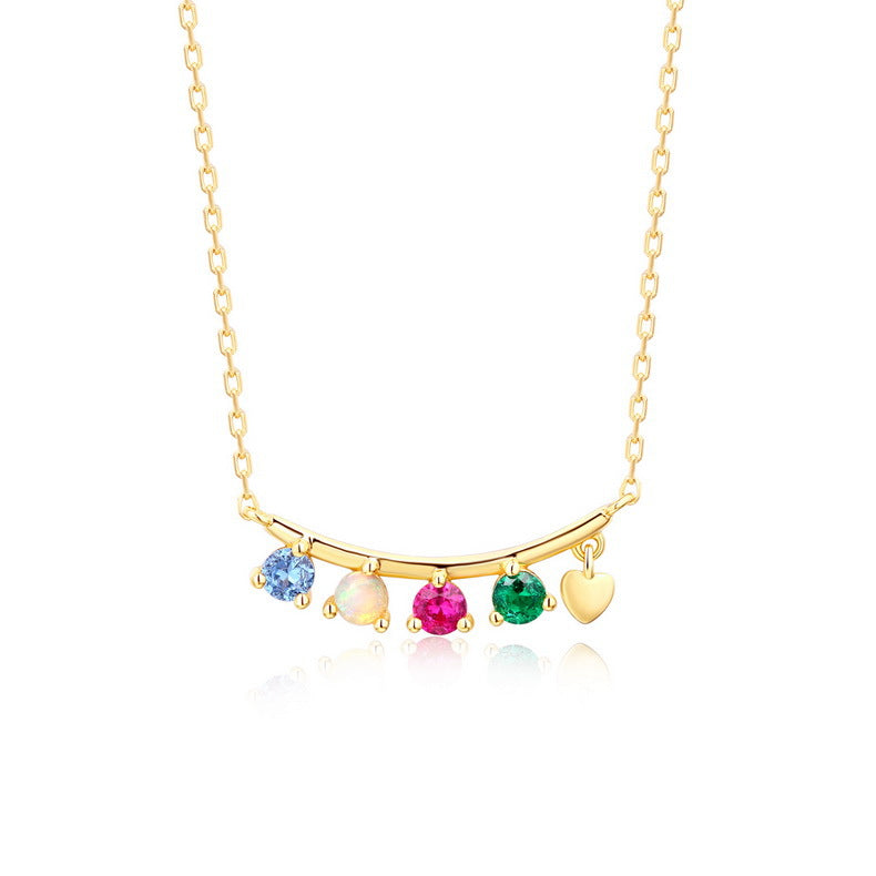 This Round Shape Colourful Zircon Barbie Silver Necklace has a delicate smile shape pendant hang with multi-colored round shape zircons and a golden heart shape. Show off your unique style with the stunning design and perfected craftsmanship of this beautiful necklace.