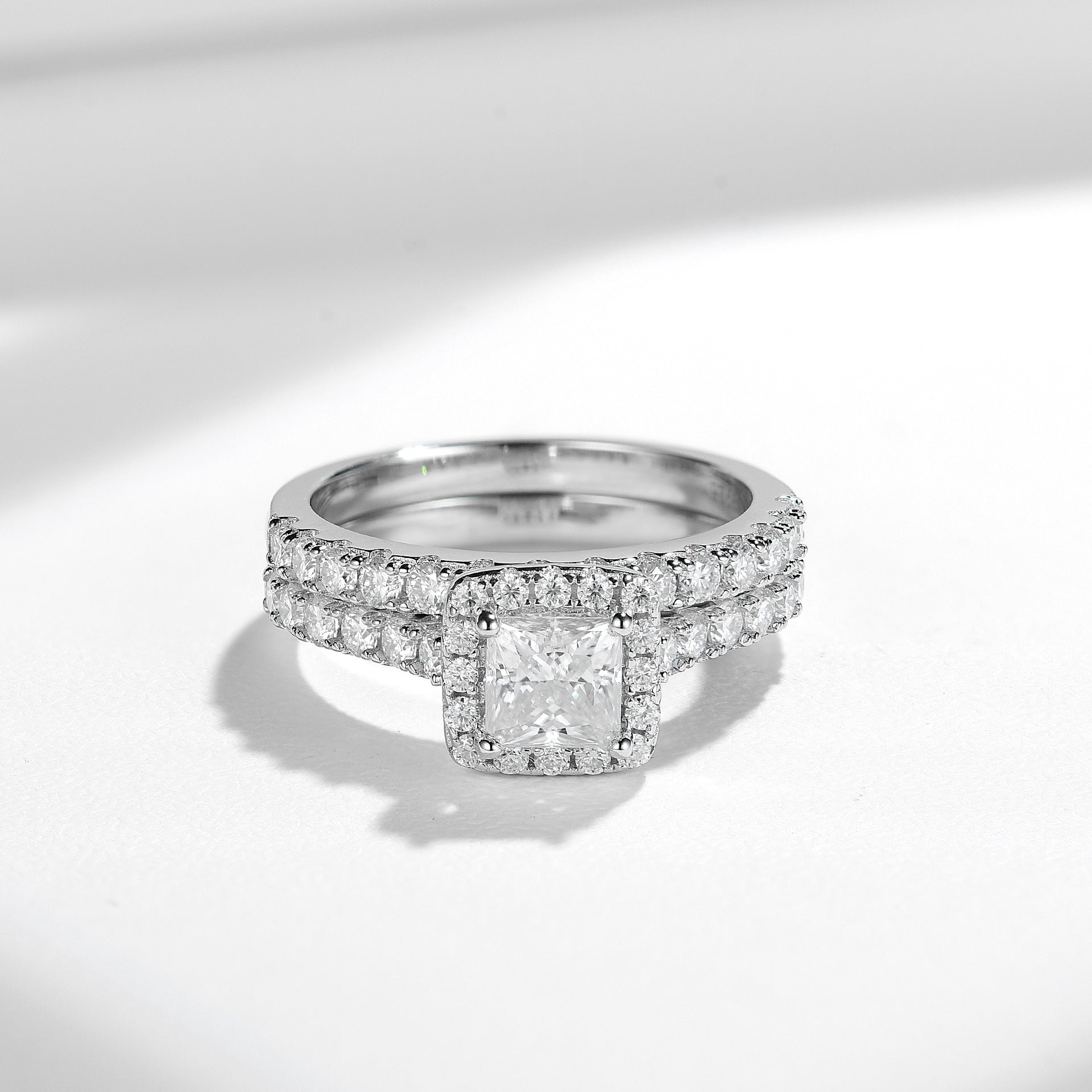 Introducing the Amazon eBay Hot Sale Princess Square 0.8 Carat Moissanite Set Women's Engagement Ring Versatile Double Layer, a stunning symbol of love and commitment. Crafted with exquisite precision, this ring features a captivating princess square cut moissanite, radiating brilliance and elegance. With a total carat weight of 0.8+0.86 CT, it promises to dazzle on every occasion, making it the perfect choice for engagements, anniversaries, or just because.