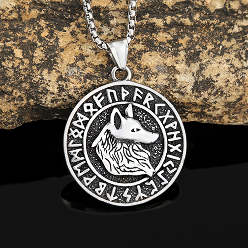 Titanium Steel Viking Wolf Head Pendant Retro Rune Necklace