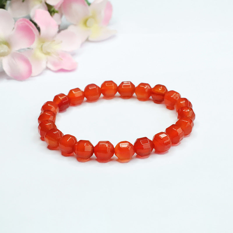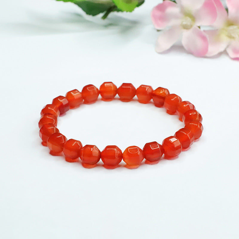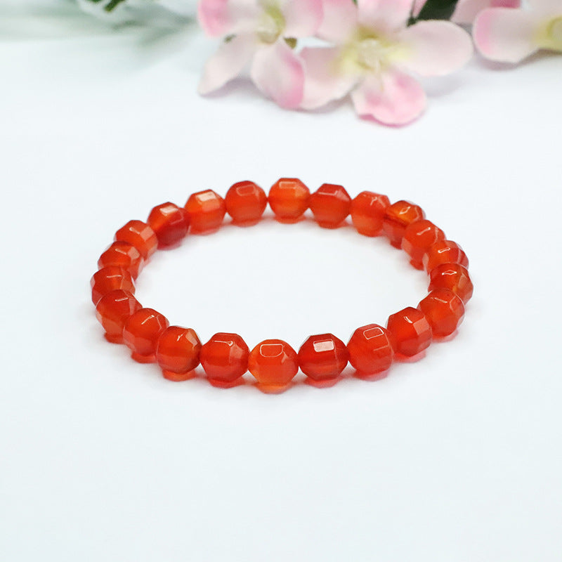 Unveil the beauty of our Natural Ice Species Red Agate Bracelet with Cut Surface. Handcrafted to perfection, this bracelet is a timeless piece that exudes elegance and charm.