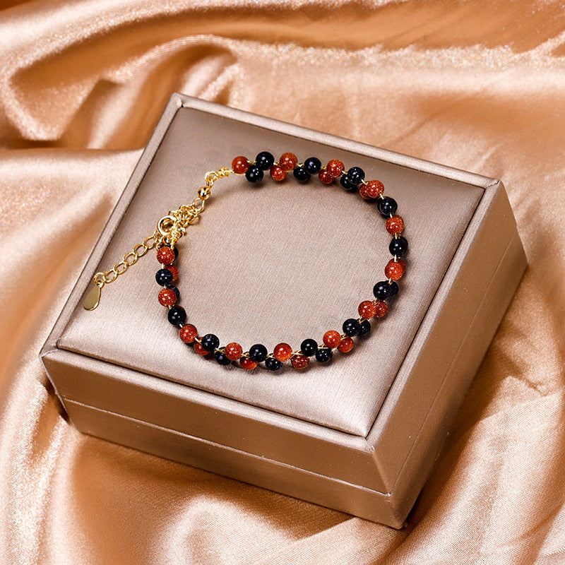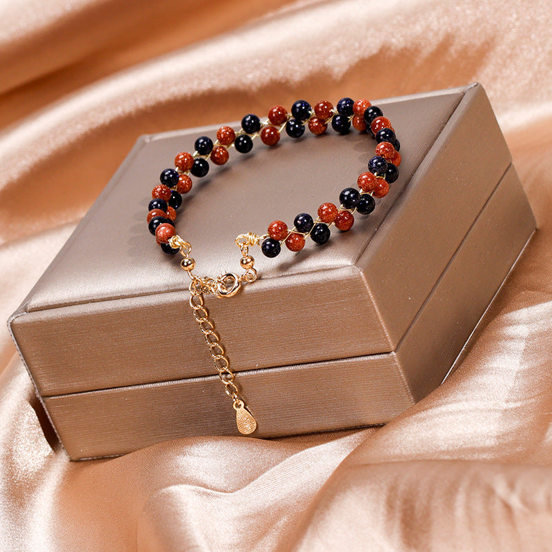 Step up your fashion game with our Crystal Gold and Blue Sandstone Bracelet. Handwoven with care, this Korean transport handicraft adds a personalized touch to your ensemble, making it an ideal accessory for women who appreciate simplicity and elegance.