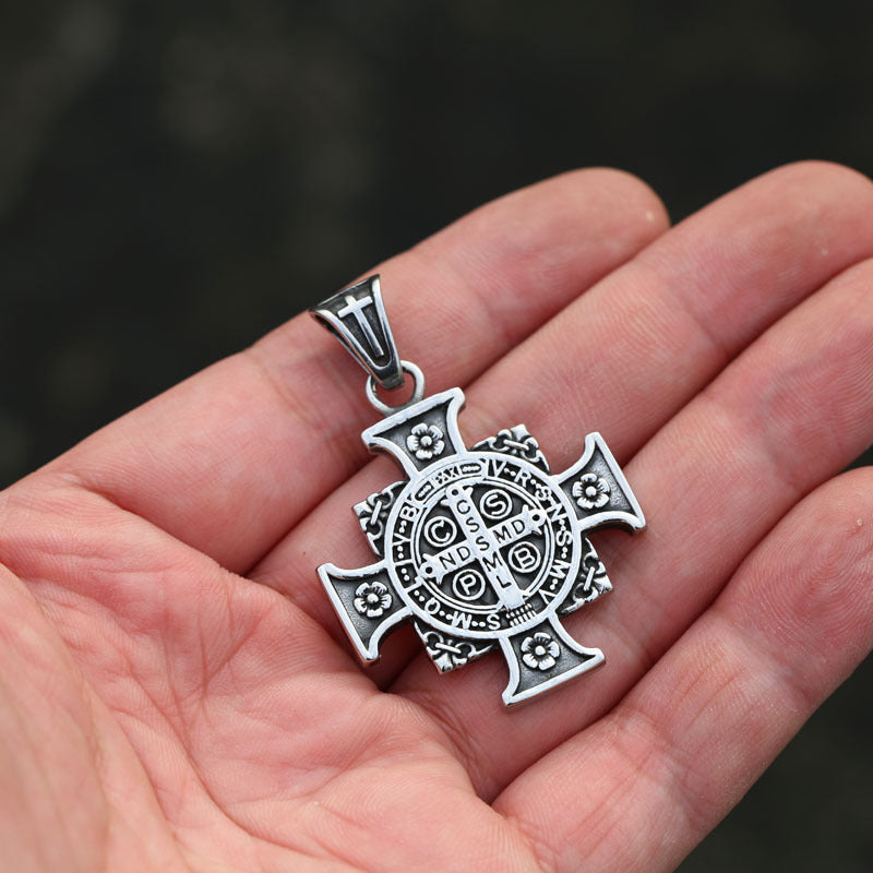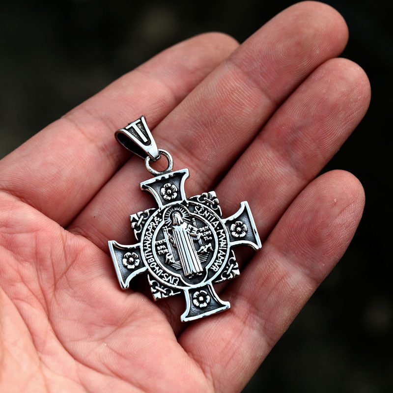 St. Benedict's Exorcism Pendant for Men - Stylish Stainless Steel Cross Necklace with Spiritual Significance