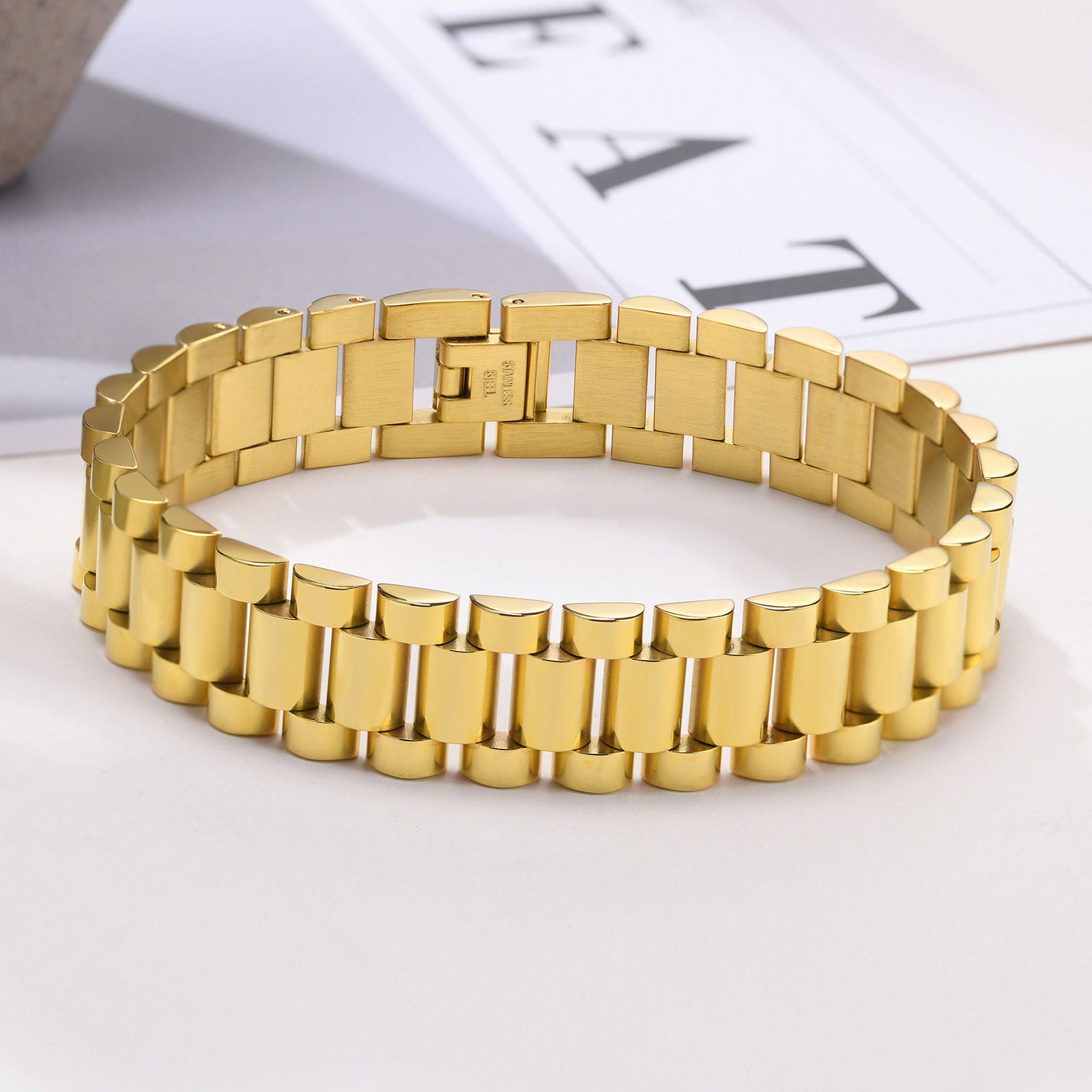 Each bracelet is meticulously designed with a stainless steel strap that offers exceptional resistance to tarnishing and corrosion. The sleek and sophisticated look makes it an ideal choice for both casual and formal occasions, ensuring that you always shine.