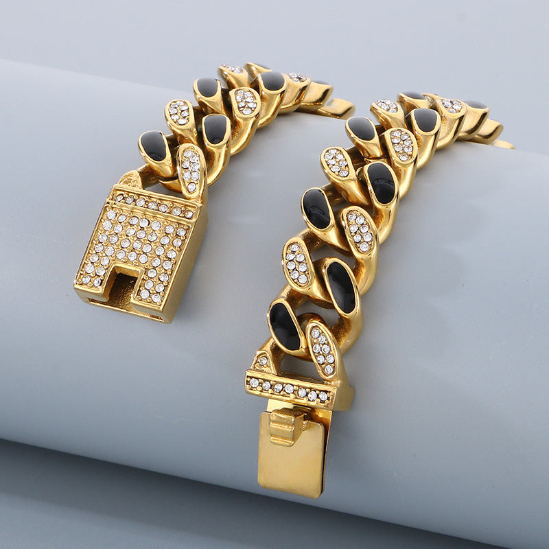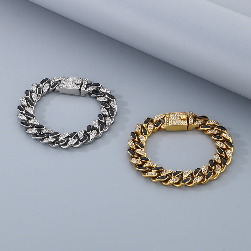 Men's Retro Epoxy Zircon-Studded Titanium Steel Cuban Chain Bracelet - 14mm Hip-Hop Style