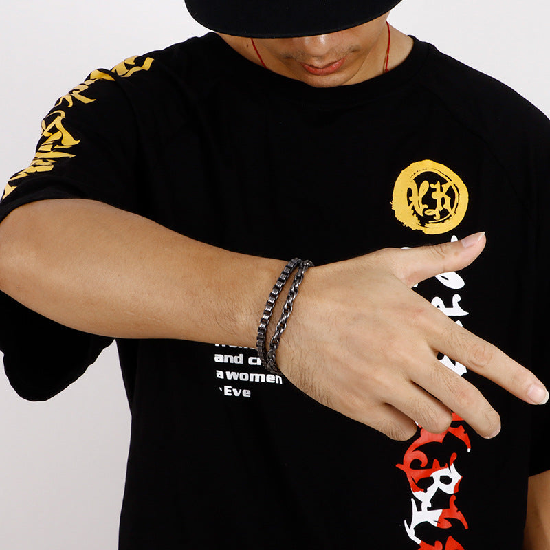 Personalized Double-Layer Titanium Steel Bracelet for Men - Wholesale European and American Style Jewelry