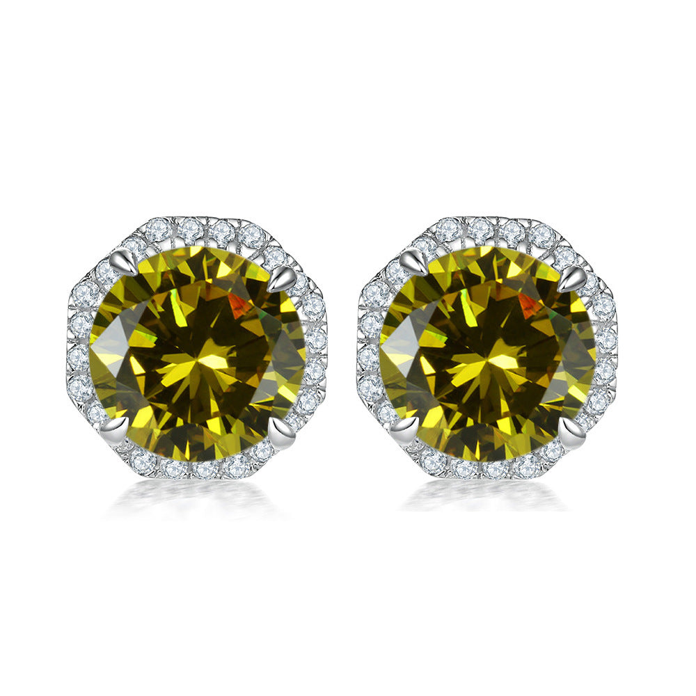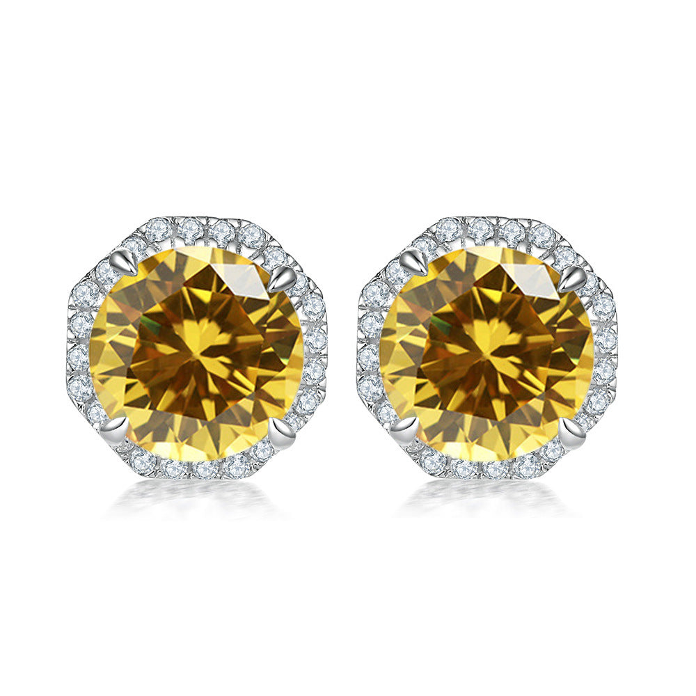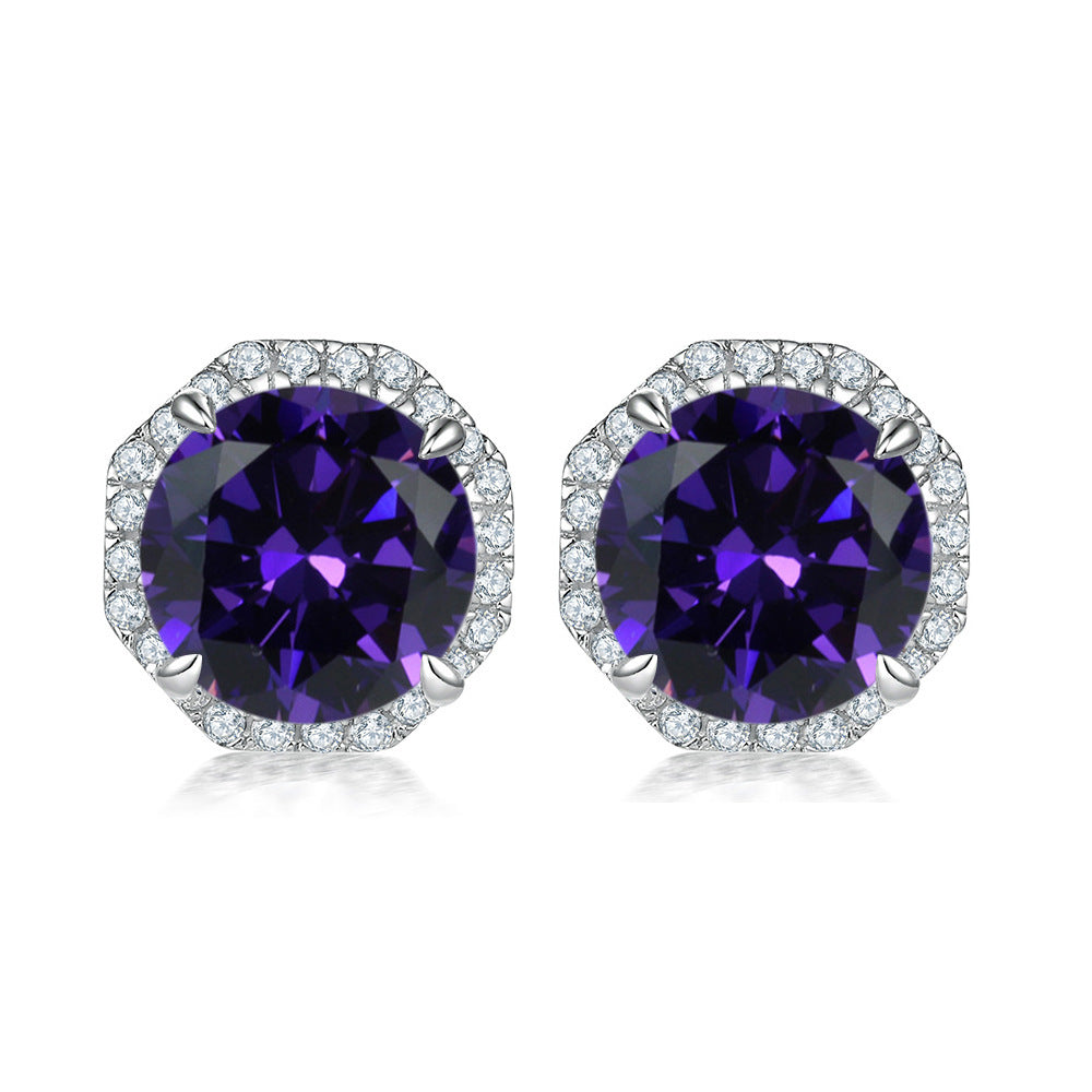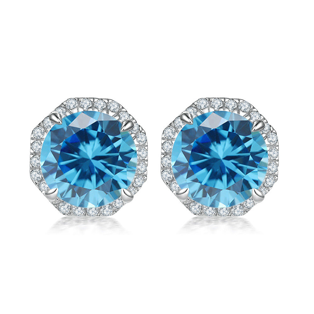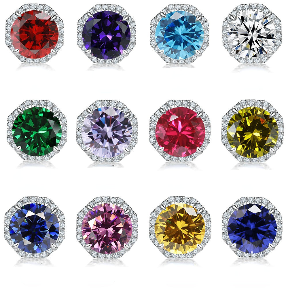 Colourful Round Zircon Soleste Halo Silver Studs Earrings for Women