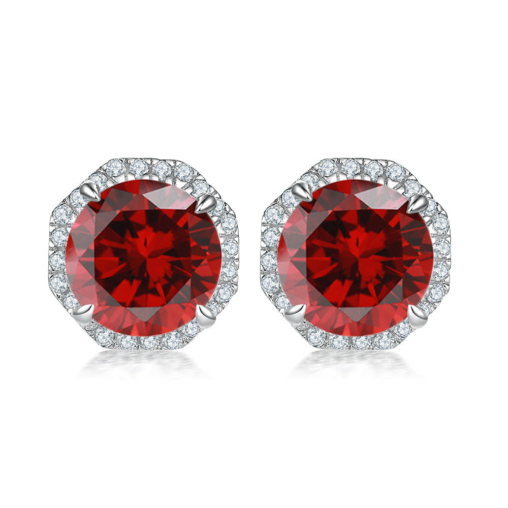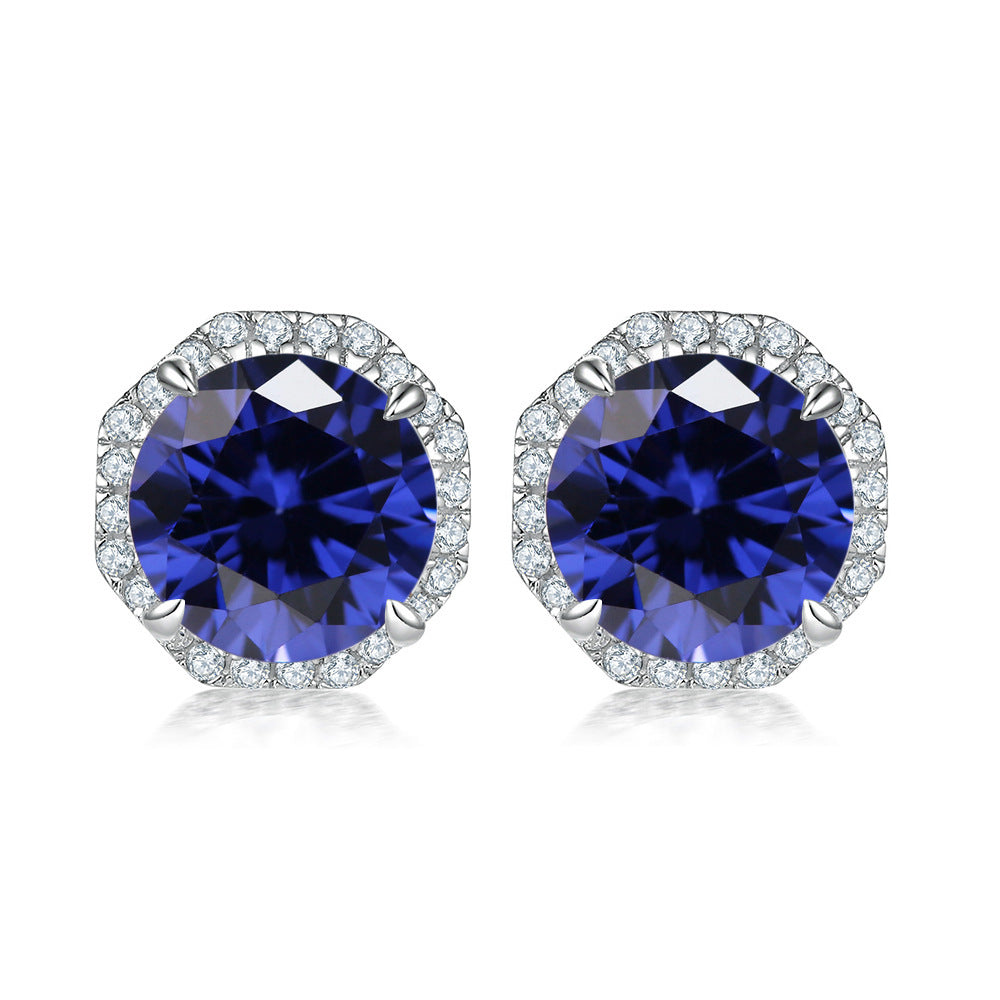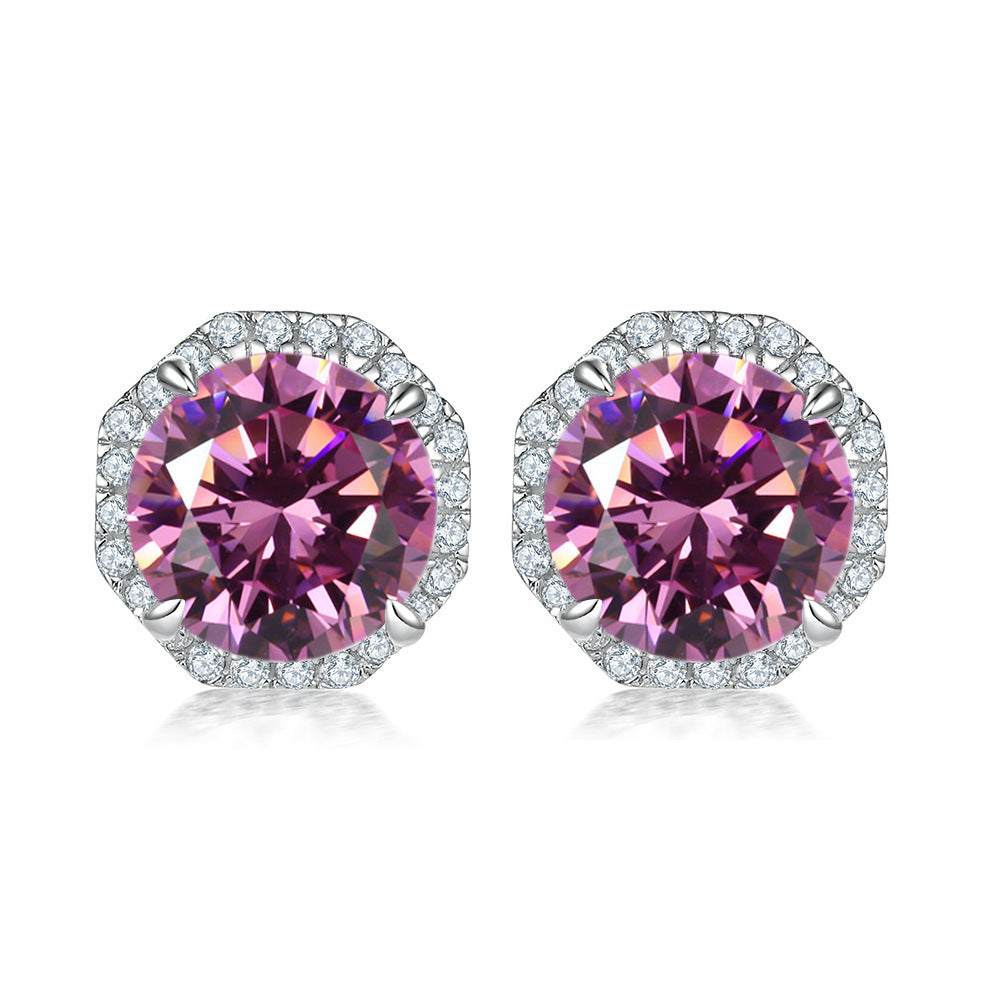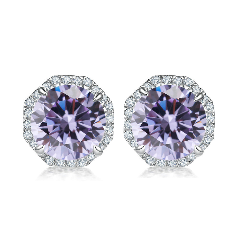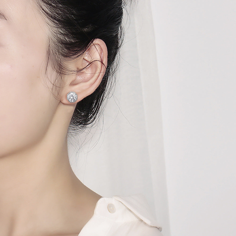 Colourful Round Zircon Soleste Halo Silver Studs Earrings for Women