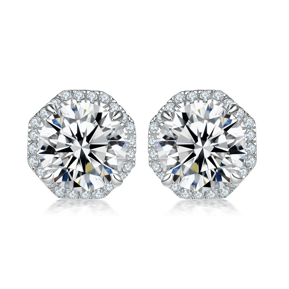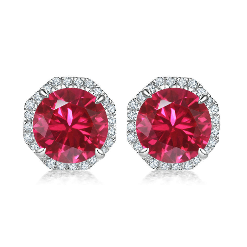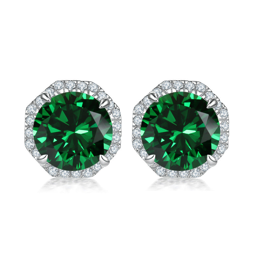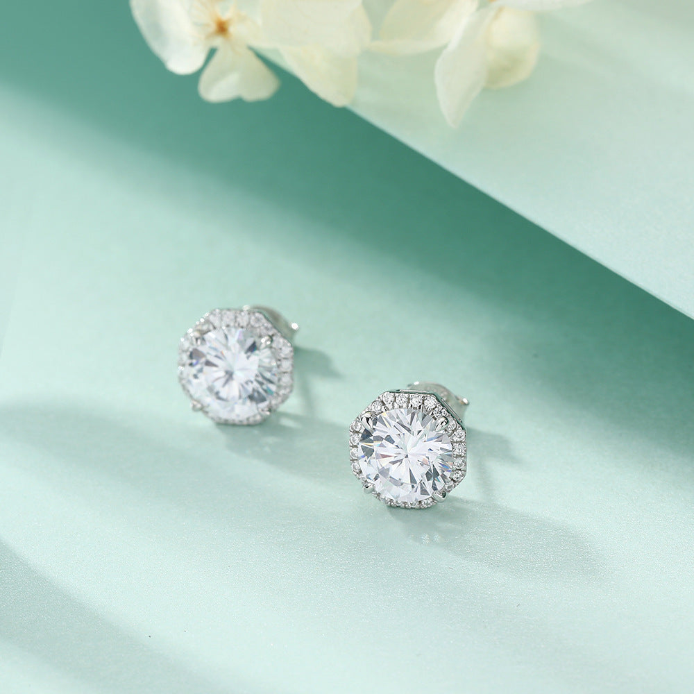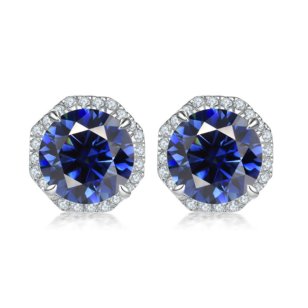 Colourful Round Zircon Soleste Halo Silver Studs Earrings for Women