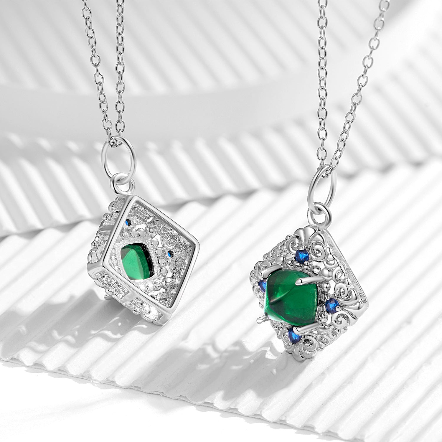 Planderful Everyday Genie Necklace – Creative Retro Pattern S925 Silver with Green Nano Zircon