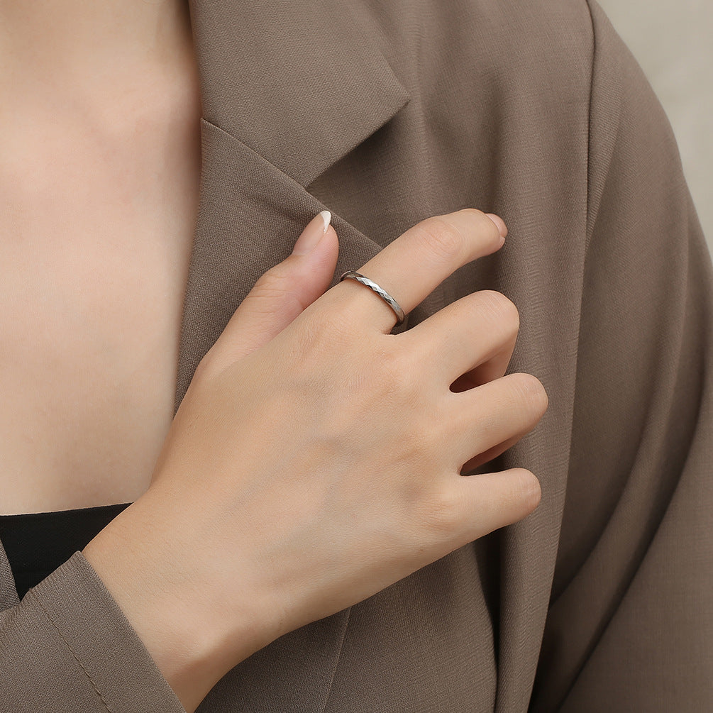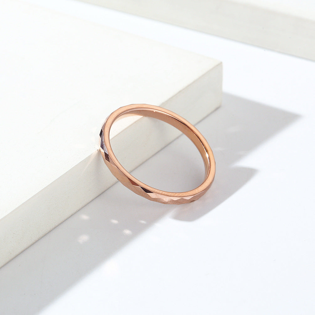 This ring features a unique rhombus cutting design that adds a touch of modernity and charm. The neutral wind aesthetic makes it suitable for both men and women, allowing for seamless stacking with other rings or jewelry pieces. Its simplistic beauty ensures that it can be worn on any occasion, from casual outings to formal events.