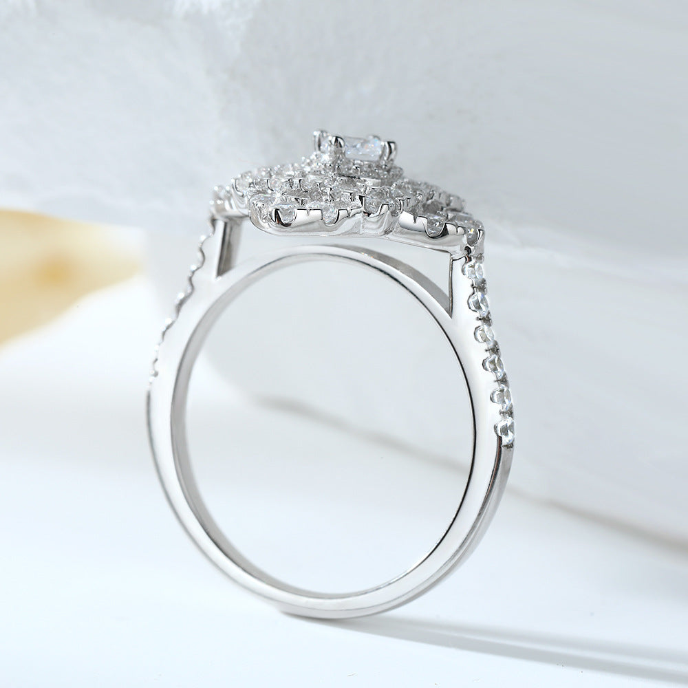 Round Zircon Double Rhombus Shape Sterling Silver Ring