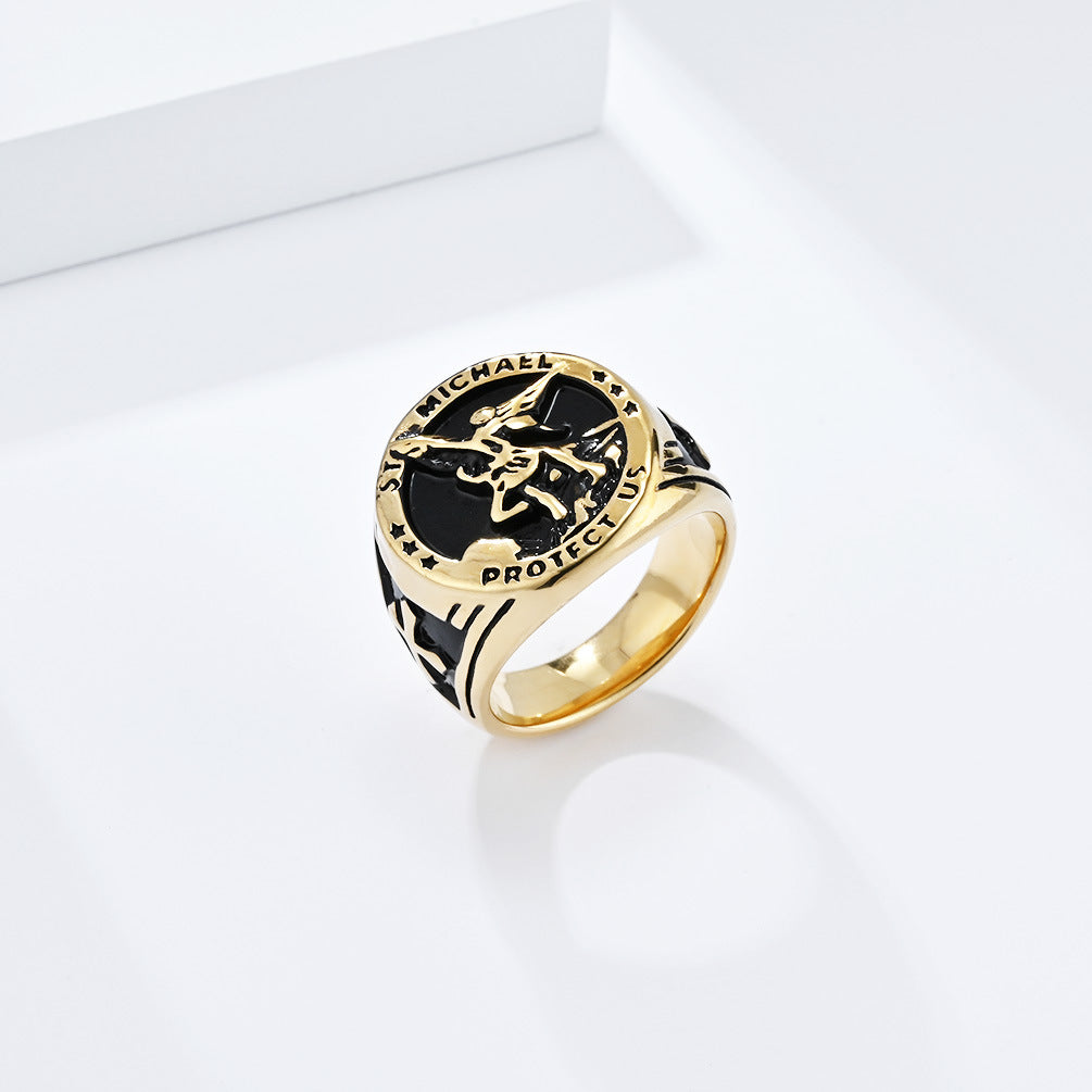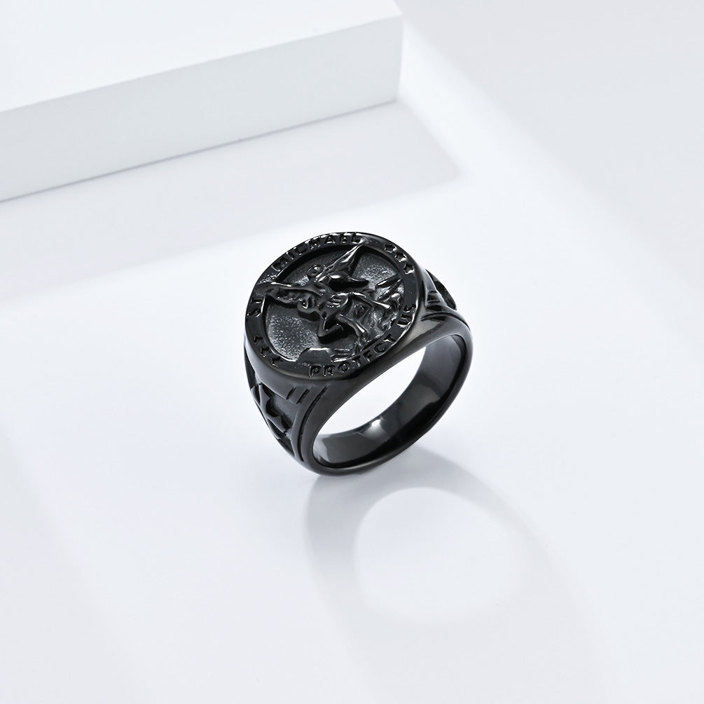 Cross-Border European And American Style Retro St. Michael's Archangel Titanium Steel Ring