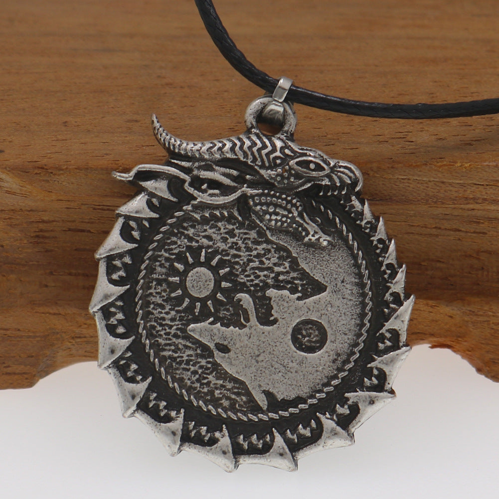 Unleash your inner warrior with our Cross-border hit Nordic mythology Viking Celtic yin and yang wolf dragon necklace. This retro men's amulet pendant is designed to exude strength and mystique.