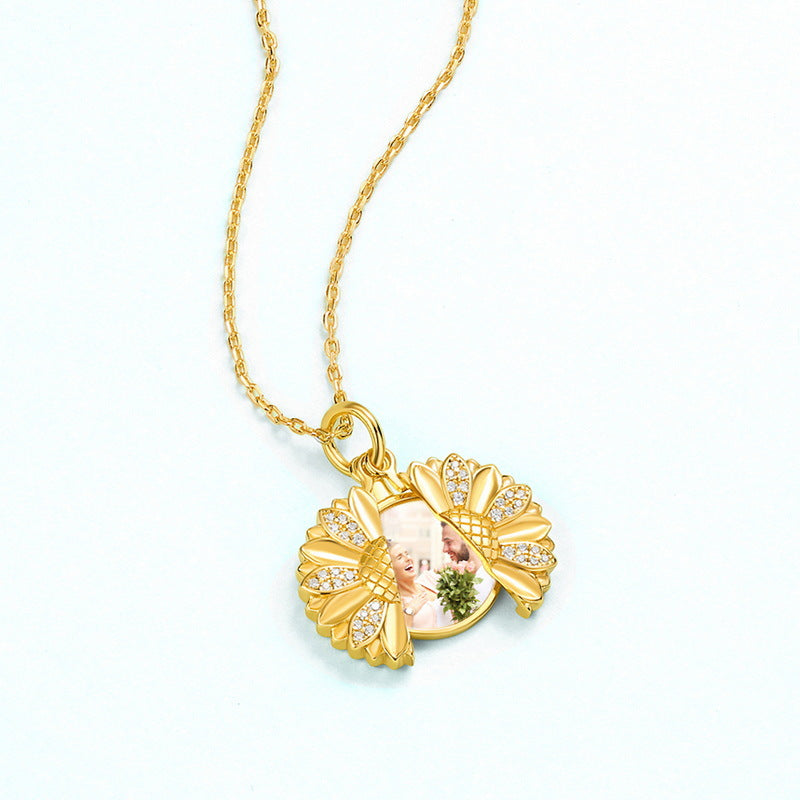 Enhance Your Style with the Daisy Photo Frame Pendant Zircon Sterling Silver Necklace