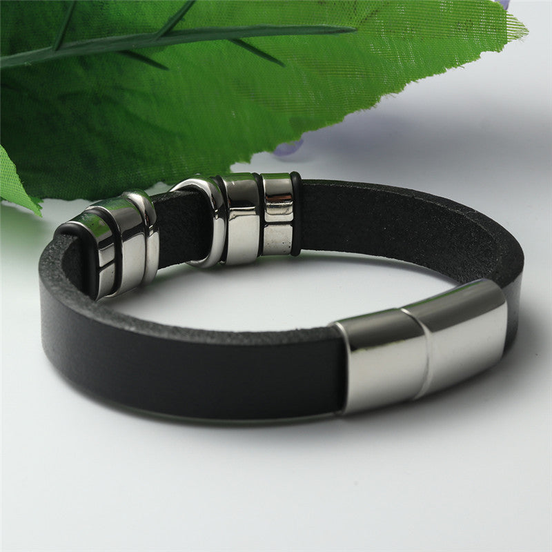 Discover the Unmatched Style of Our Titanium Steel Hollow X-Shaped Leather Bracelet