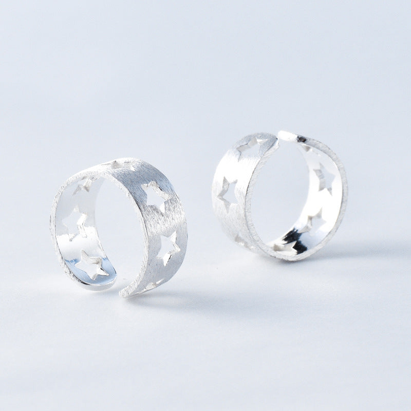 Hollow Star Pattern Brushed Ear Clip Silver Earrings for Women