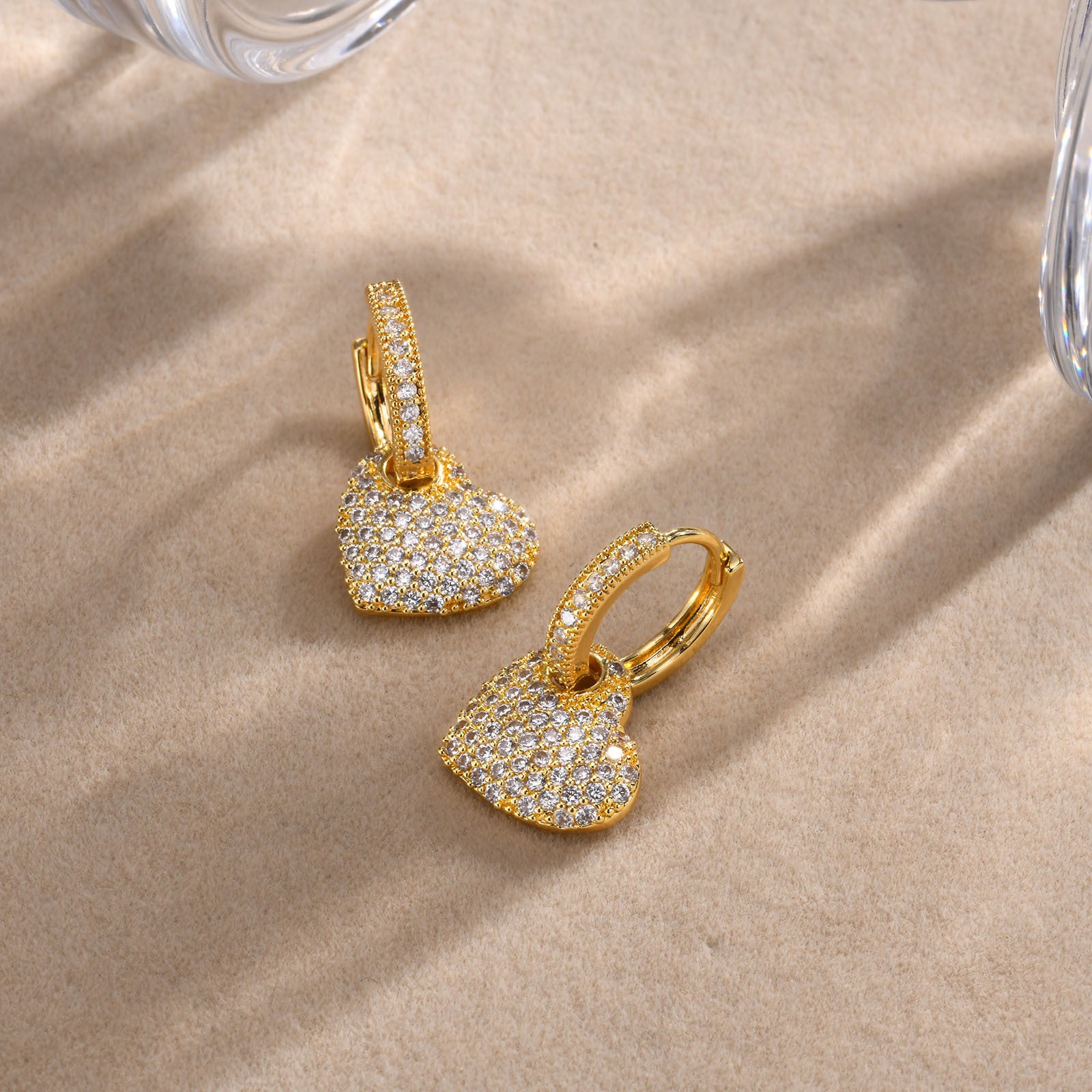 • Stunning Design: The heart-shaped zircon stones catch the light beautifully, making these earrings a perfect statement piece for any occasion.