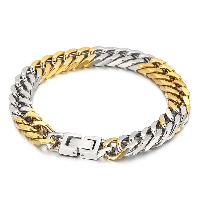 Stylish Encrypted Four-sided Grinding Chain Bracelet and Necklace in Steel Gold Titanium for Men – European and American Hip-hop Trend