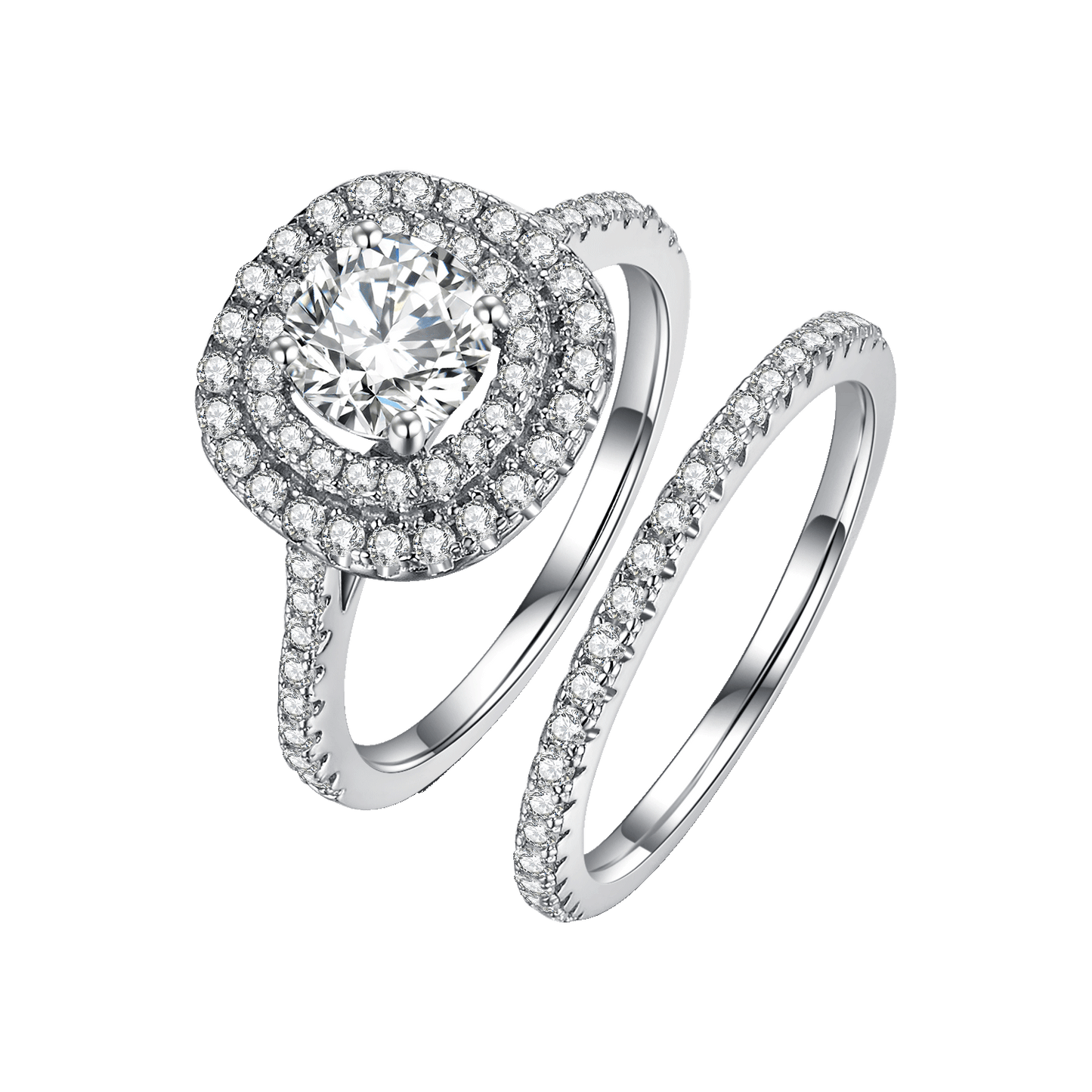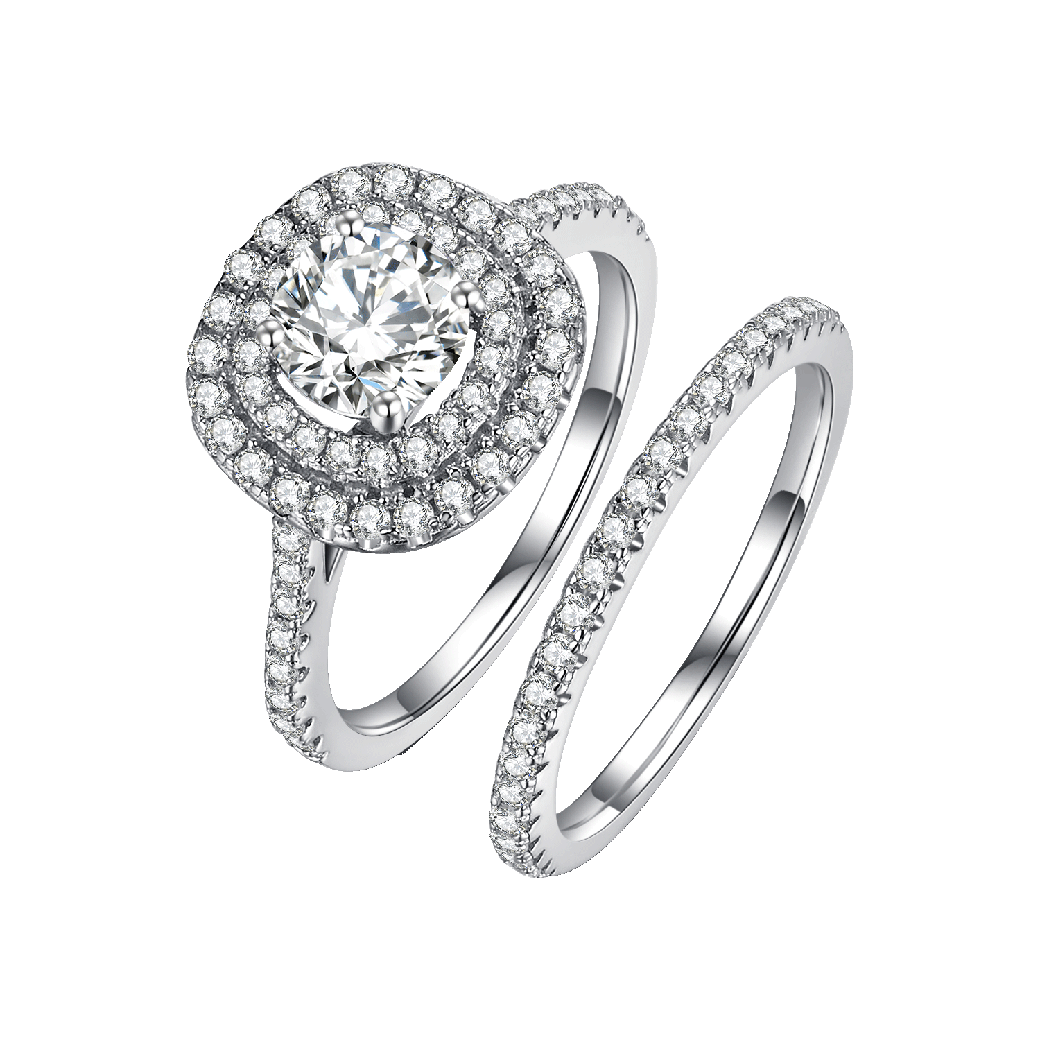 This exquisite jewelry set is perfect for all occasions. Featuring a stunning eternity ring and a ring with round cut Moissanite Soleste halo, this set will bring elegance and beauty to any woman's look. Crafted with sterling silver for an elegant aesthetic and long-lasting beauty, this rings pack is the perfect choice for those special occasions when you want to make a statement.