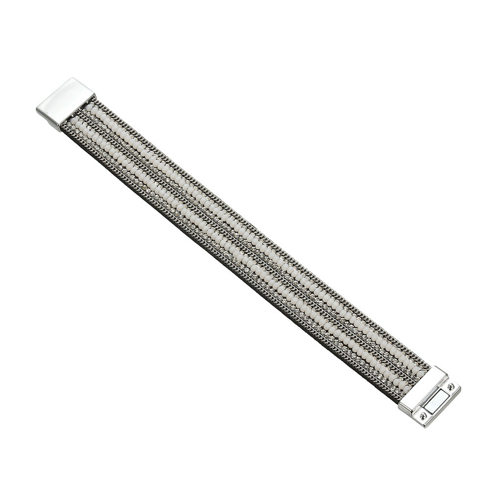 Elegant Rhinestone Leather Bracelet with Magnet Clasp - Vienna Verve Collection