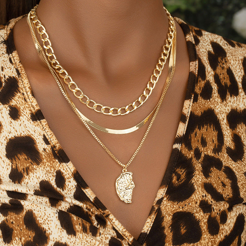 Step into the world of fashion-forward accessories with our Europe and the United States popular new jewelry wholesale 3-layer metal necklace. Elevate your style with this cross-border trade sensation that embodies fashion at its finest.