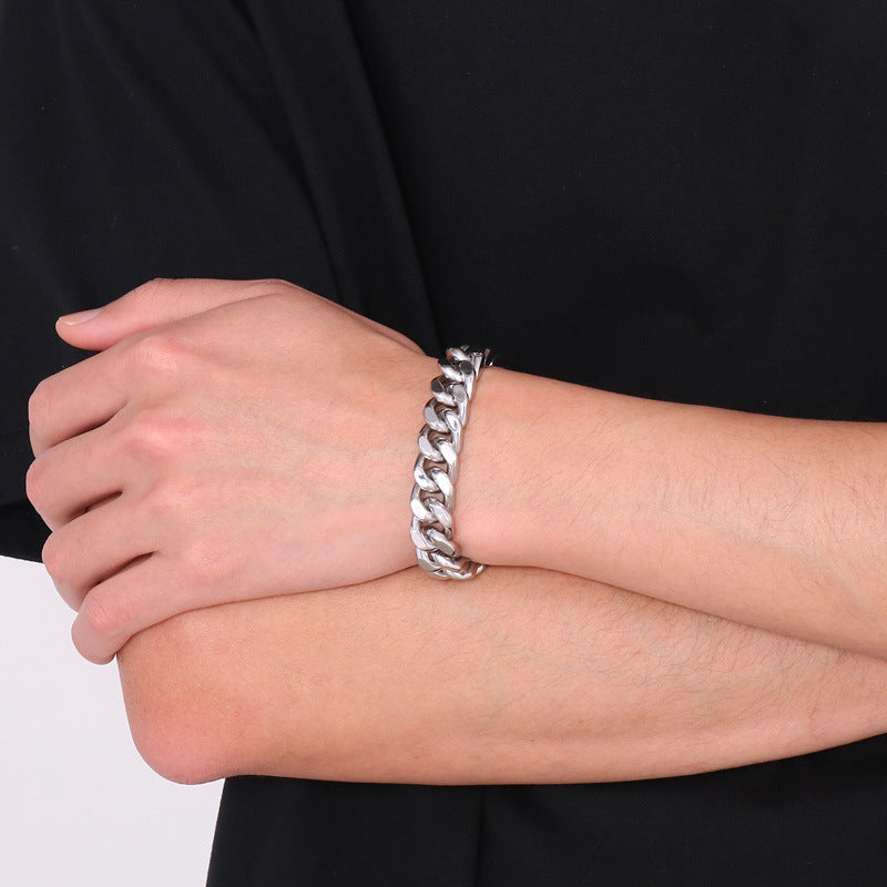 • Personalized Trendy Design: With its Cuban link style and fashionable faucet buckle, this accessory reflects the latest trends in hip-hop culture, perfect for any stylish man.