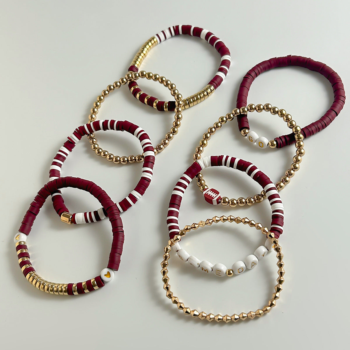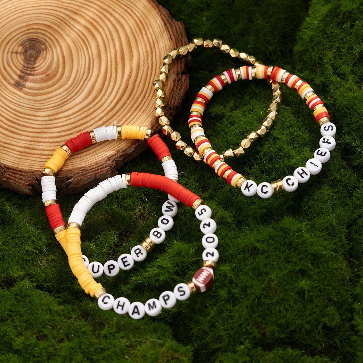 The European and American Cross-Border Football Stacking Set Bracelet by Planderful delivers a unique blend of style and sports enthusiasm for fashion-forward individuals looking to showcase their love for the game. This creative Super Bowl sports wind soft pottery beaded bracelet jewelry stands out as a fashionable accessory that celebrates sports culture.
