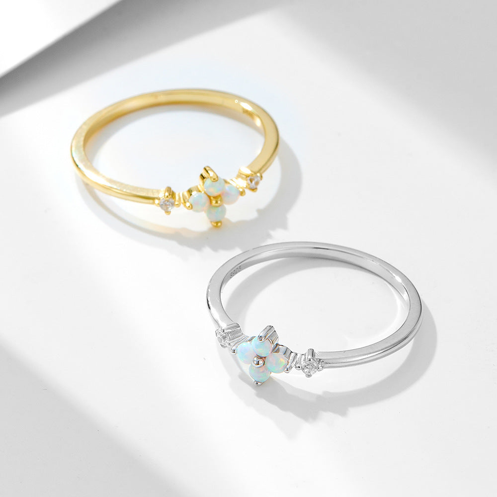 European and American Cross-border S925 Sterling Silver Opal Flower Ring