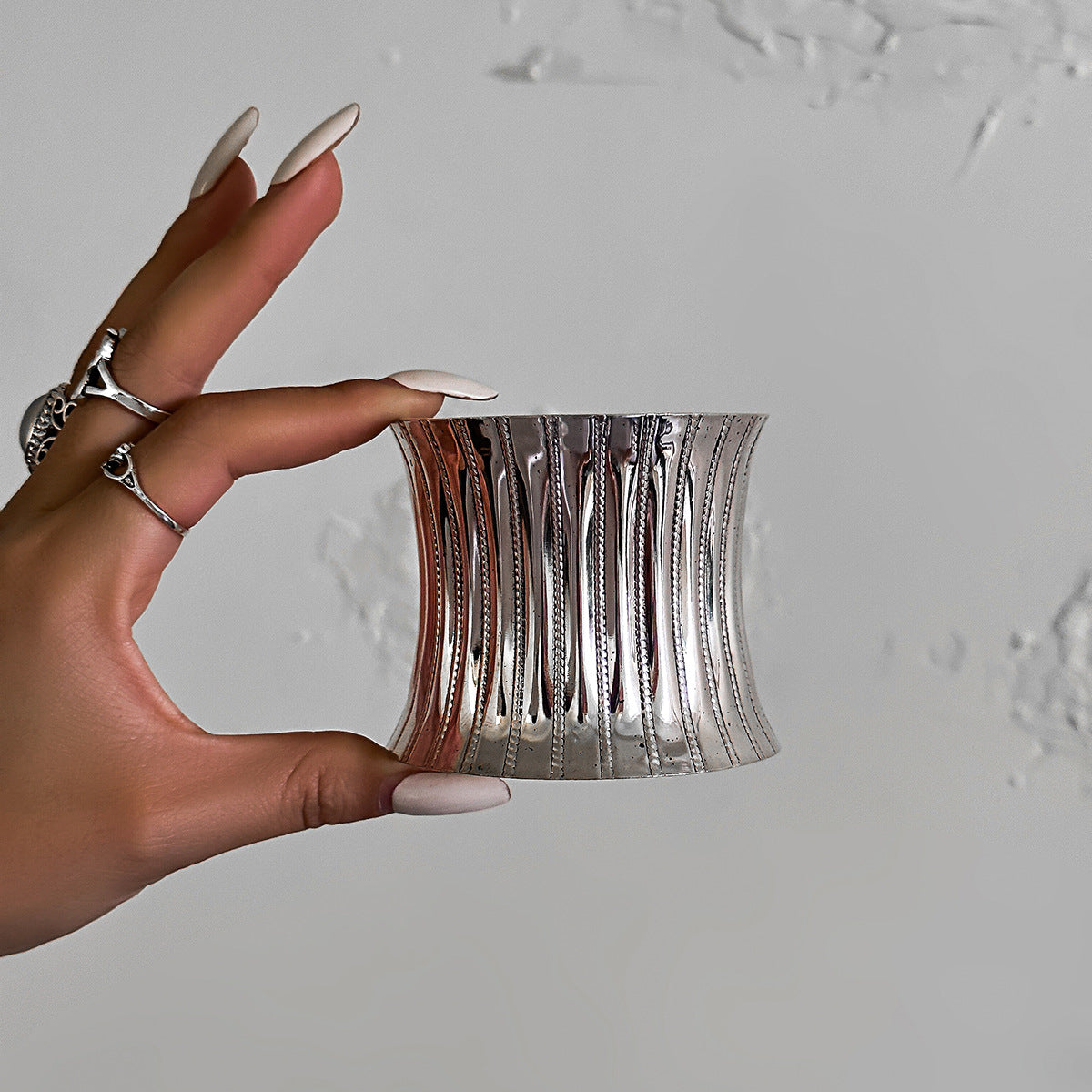 European and American Wide Waistline Bracelet with Striped Texture Opening, Niche Metal Accentuation Bracelet.